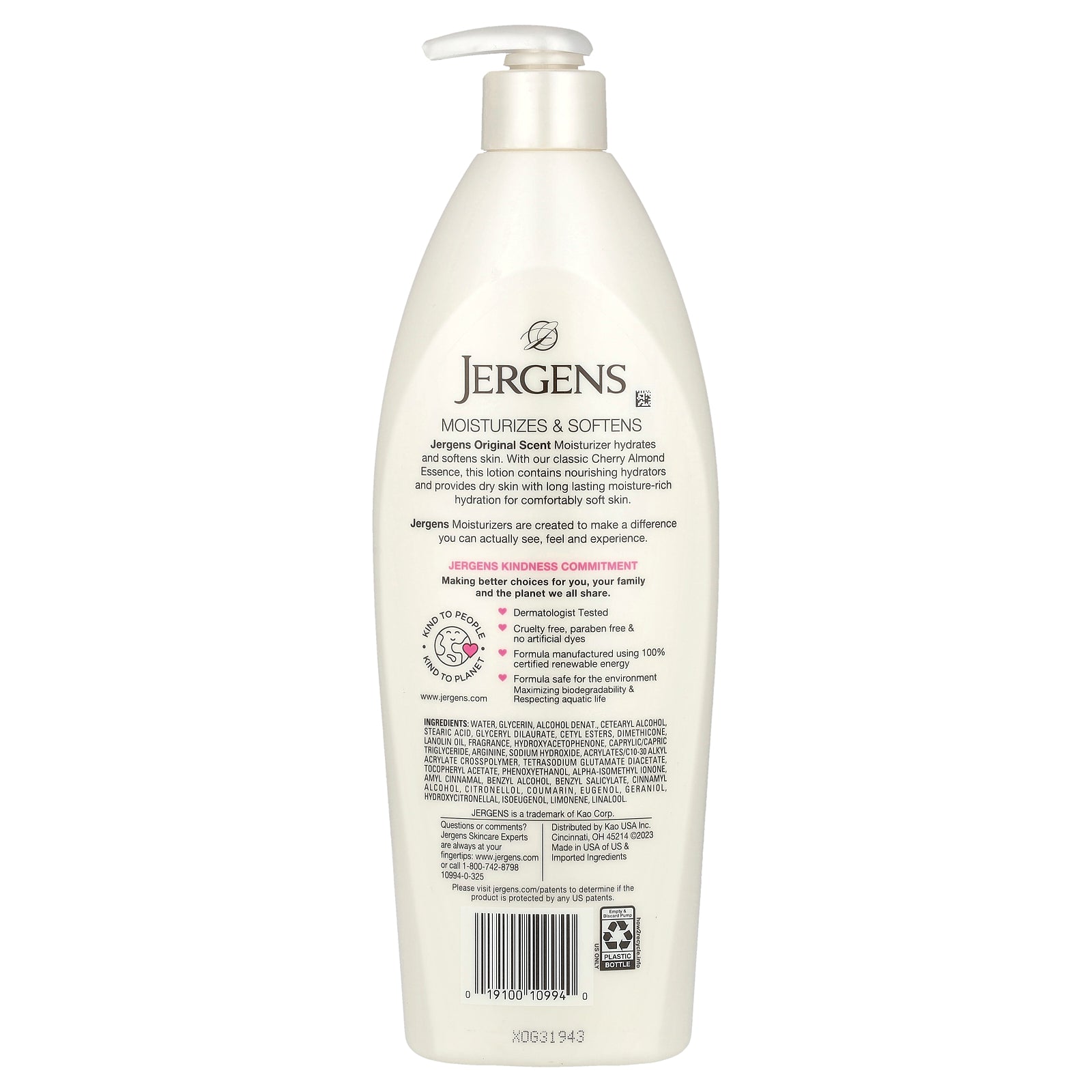 Jergens Original Scent Moisturizer hydrates and softens skin. With our classic Cherry Almond Essence, this lotion contains nourishing hydrators and provides dry skin with long lasting moisture-rich hydration for comfortably soft skin.