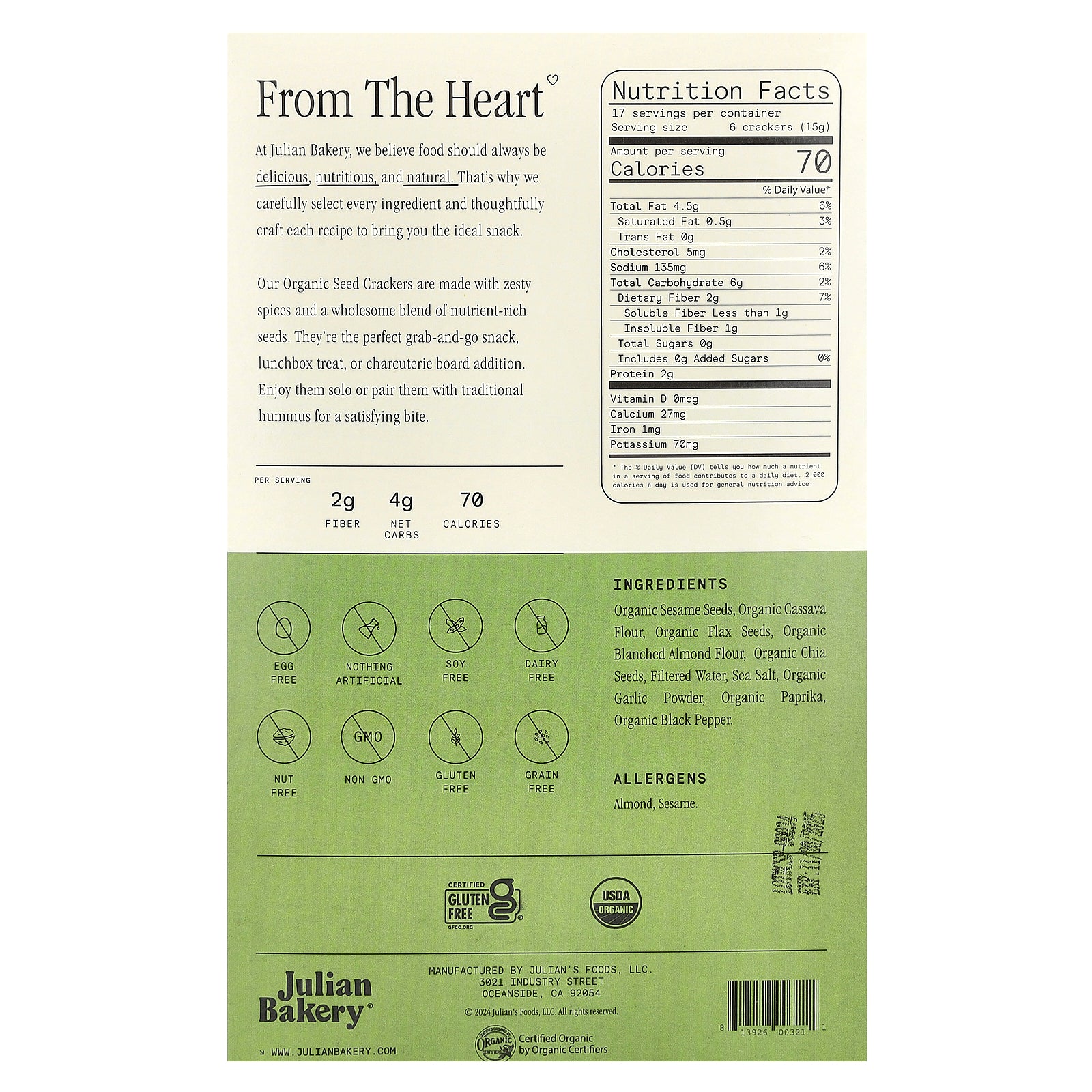 At Julian Bakery, we believe food should always be delicious, nutritious, and natural. That's why we carefully select every ingredient and thoughtfully craft each recipe to bring you the ideal snack.