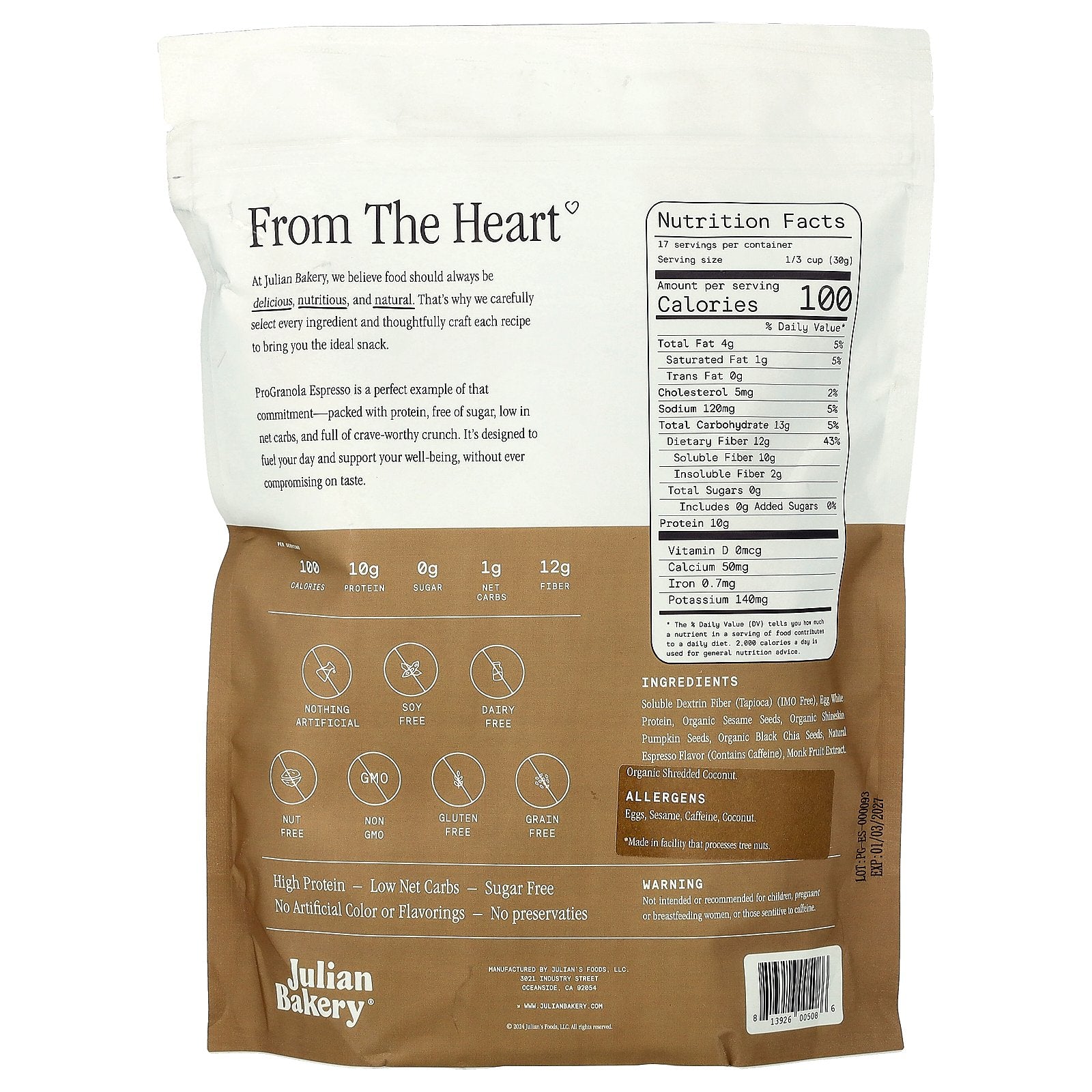 ProGranola Espresso is perfect example of that commitment - packed with protein, free of sugar, low in net carbs, and full of crave-worthy crunch. It's designed to fuel your day and support your well-being, without ever compromising on taste.