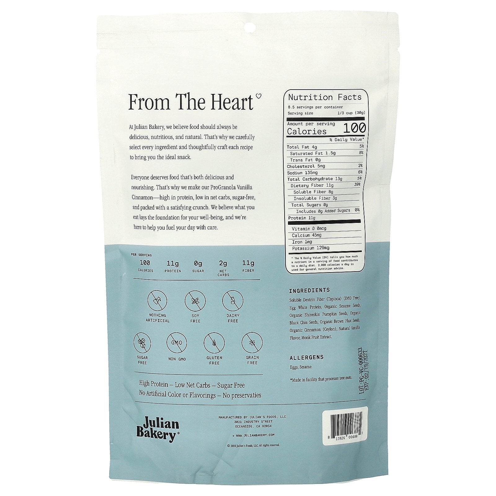 Everyone deserves food that's both delicious and nourishing. That's why we make our ProGranola Vanilla Cinnamon-high in protein, low in net carbs, sugar-free, and packed with a satisfying crunch. We believe what you eat lays the foundation for your well-being, and we're here to help you fuel your day care.