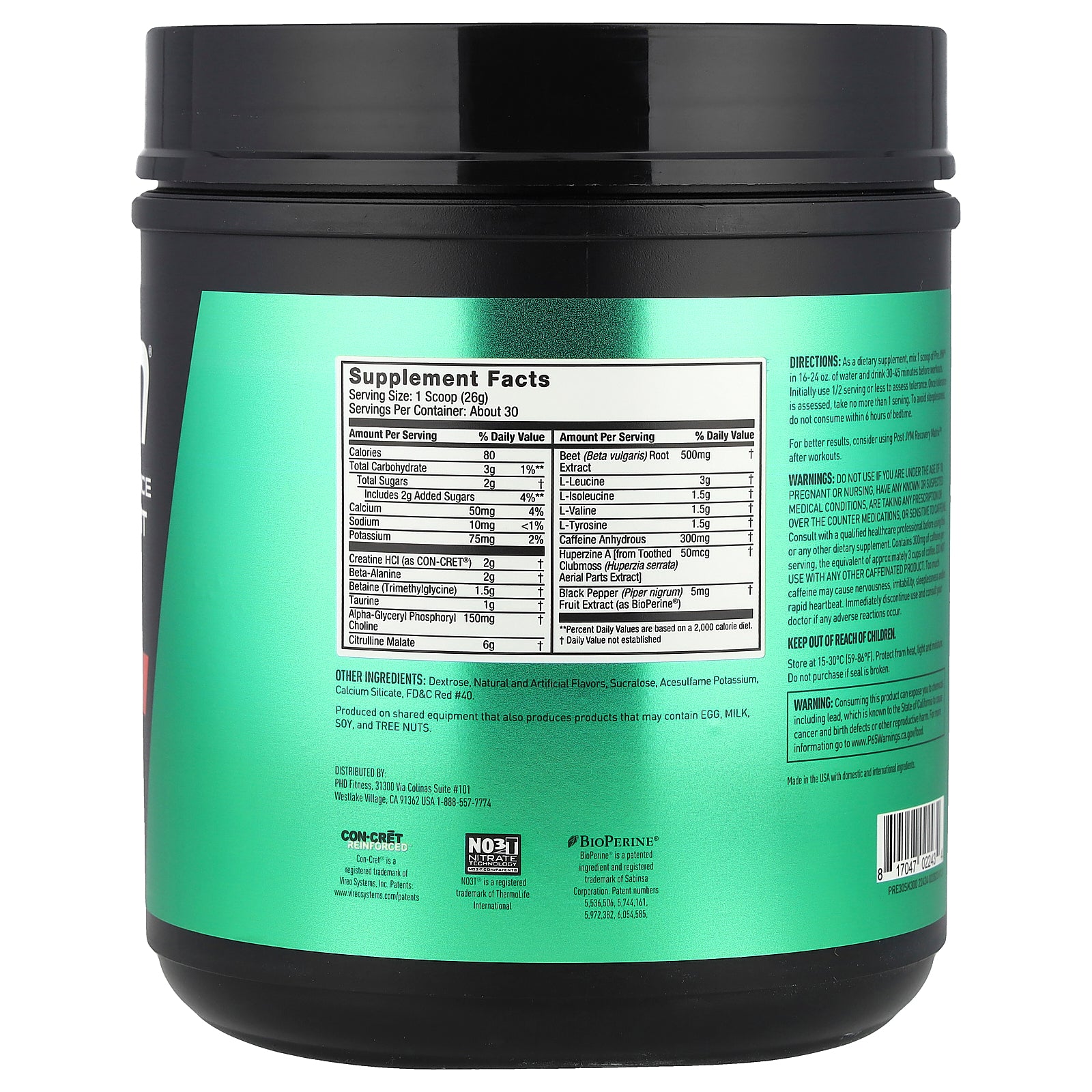 As a dietary supplement, mix 1 scoop of Pre JYM™ in 16-24 oz. of water and drink 30-45 minutes before workouts. Initially use 1/2 serving or less to assess tolerance. Once tolerance is assessed, take no more than 1 serving. To avoid sleeplessness, do not consume within 6 hours before bedtime.