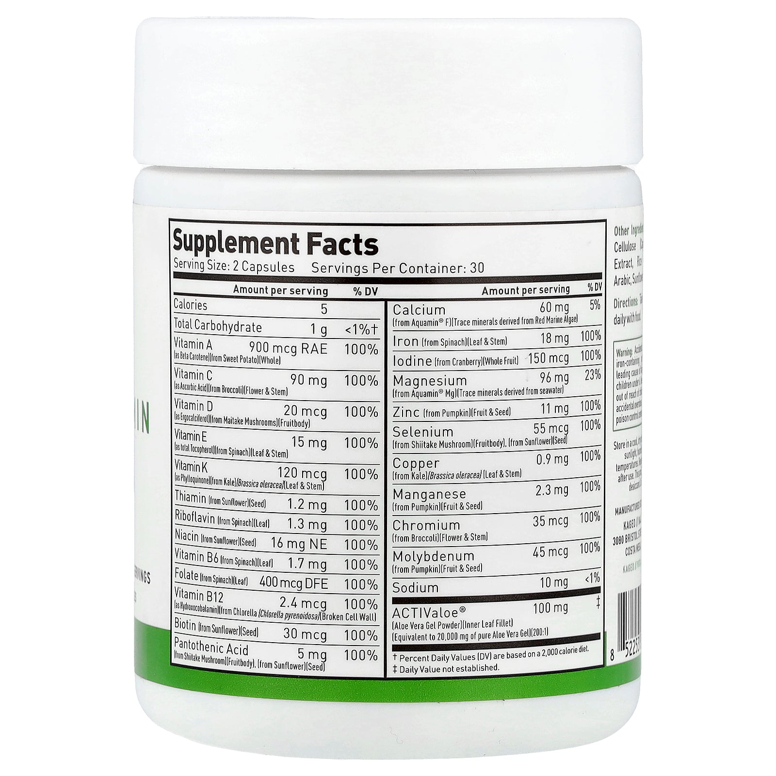 | Vitamin K (as Phytonadione) (from Kale) (Leaf & Stem) | 120 mcg | 100% |
