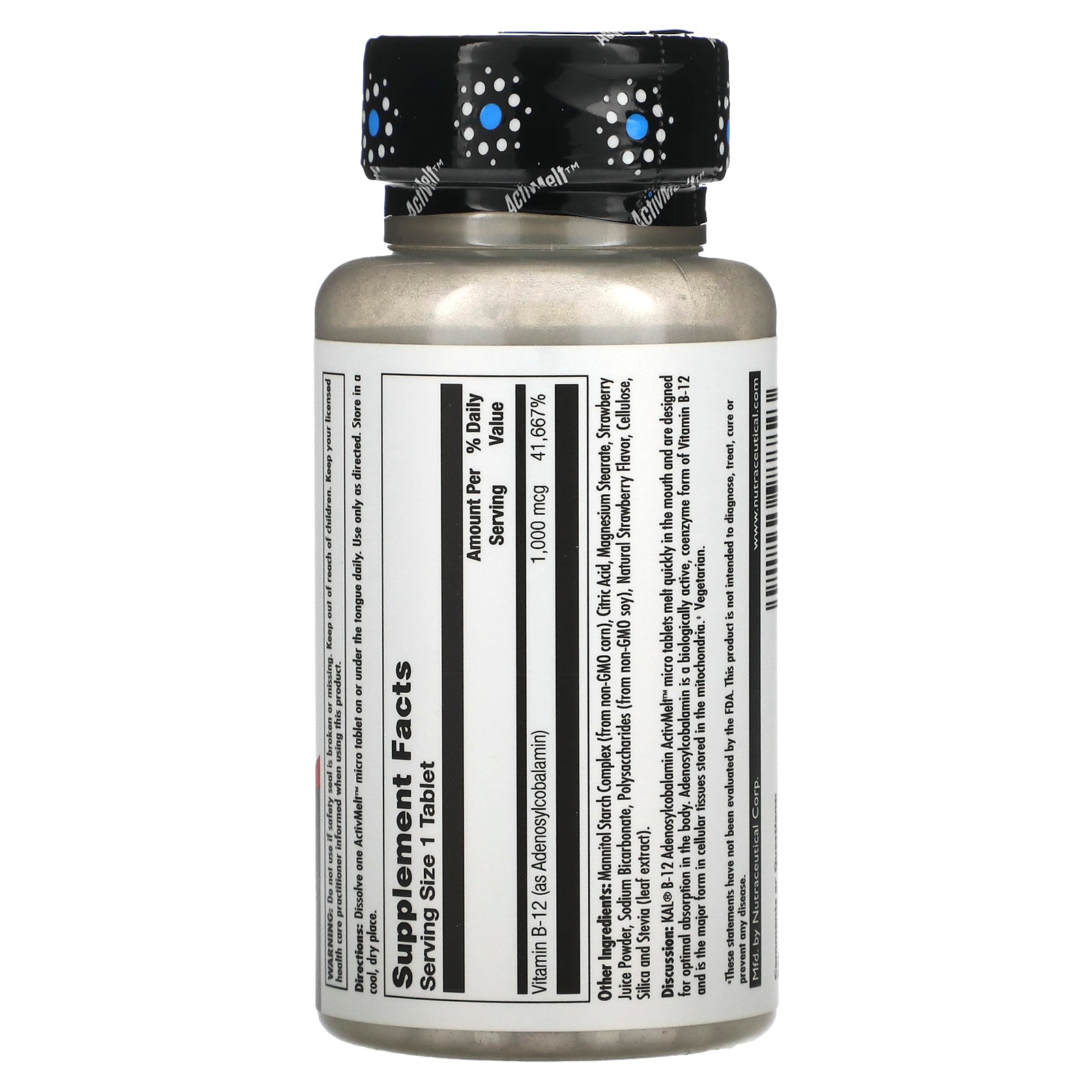 Discussion: KAL® B-12 Adenosylcobalamin ActivMelt™ micro tablets melt quickly in the mouth and are designed for optimal absorption in the body. Adenosylcobalamin is a biologically active, coenzyme form of Vitamin B-12 and is the major form in cellular tissues stored in the mitochondria.