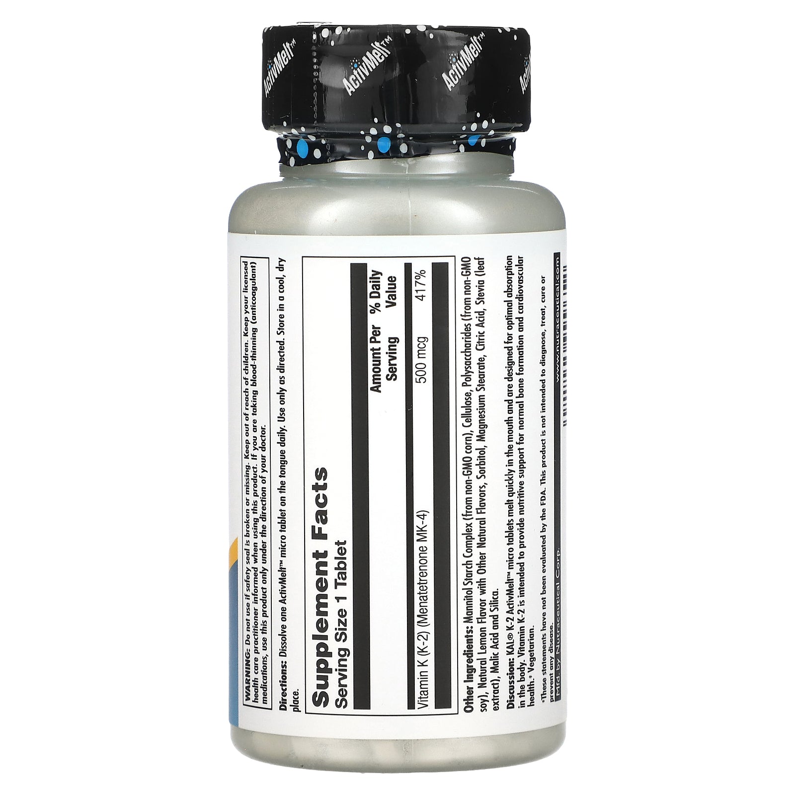 Discussion: KAL® K-2 ActivMelt™ micro tablets melt quickly in the mouth and are designed for optimal absorption in the body. Vitamin K-2 is intended to provide nutritive support for normal bone formation and cardiovascular health.