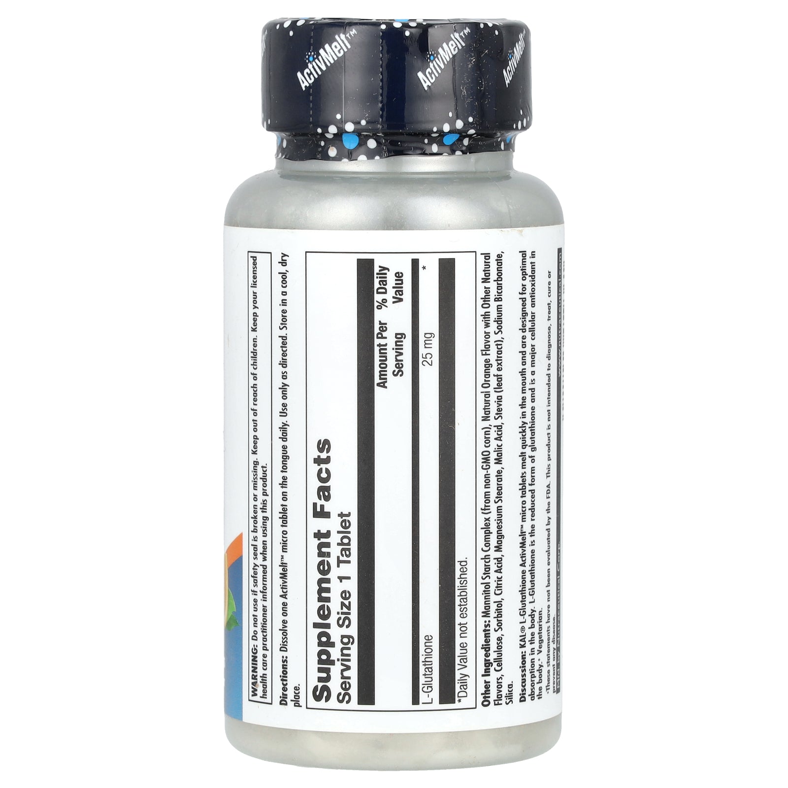 Discussion: KAL® L-Glutathione ActivMelt™ micro tablets melt quickly in the mouth and are designed for optimal absorption in the body. L-Glutathione is the reduced form of glutathione and is a major cellular antioxidant in the body.