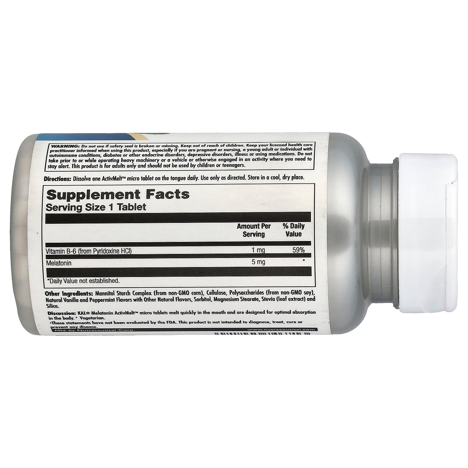 Discussion: KAL® Melatonin ActivMelt™ micro tablets melt quickly in the mouth and are designed for optimal absorption in the body.