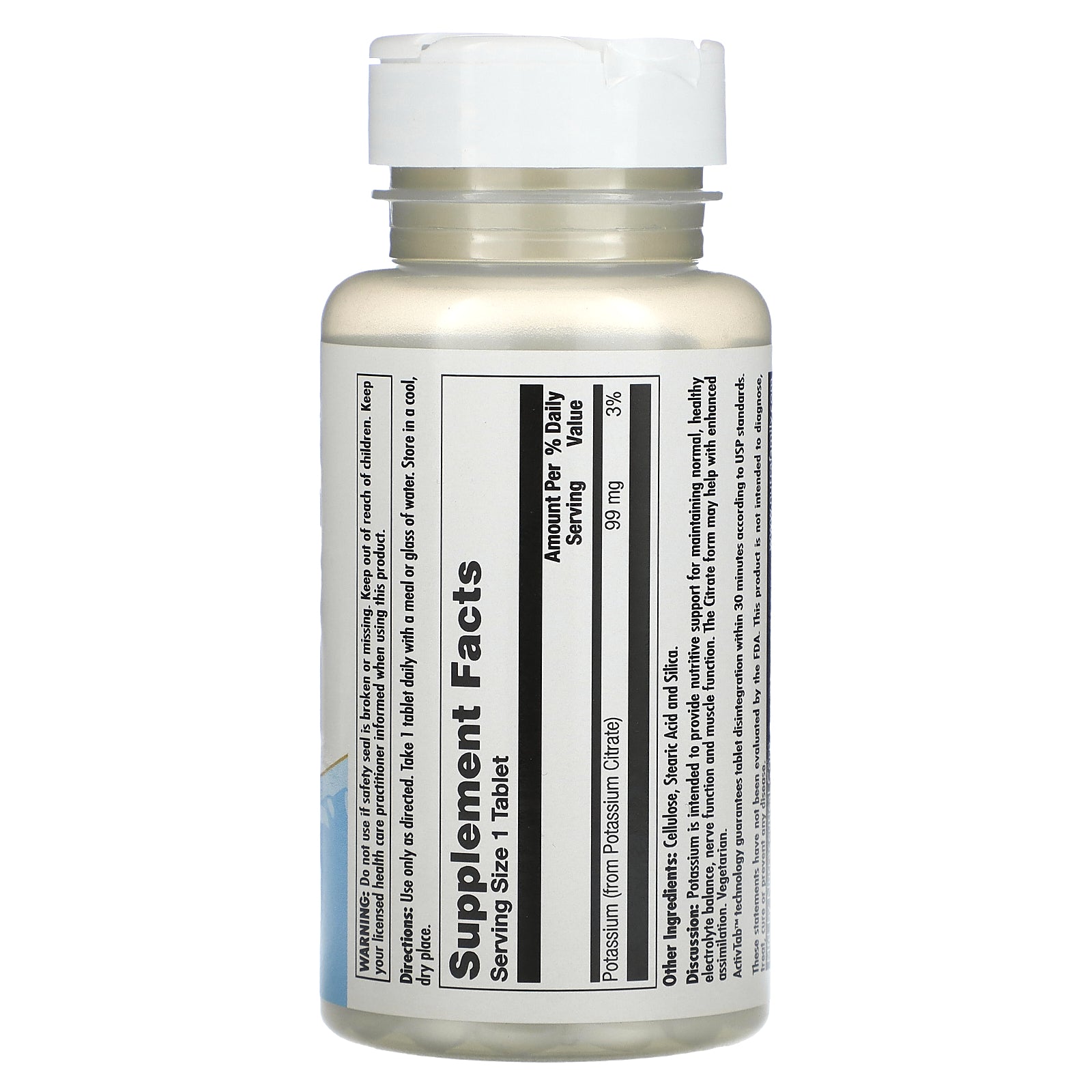 Discussion: Potassium is intended to provide nutritive support for maintaining normal, healthy electrolyte balance, nerve function and muscle function. The Citrate form may help with enhanced assimilation.