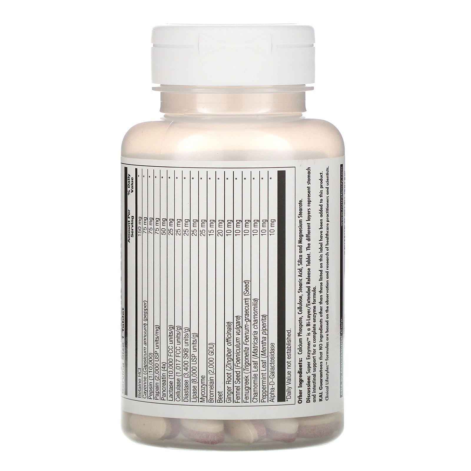 Discussion: Super Enzymes™ is a Bi-Layer/Extended Release Tablet. The different layers represent stomach and intestinal support for a complete enzyme formula.