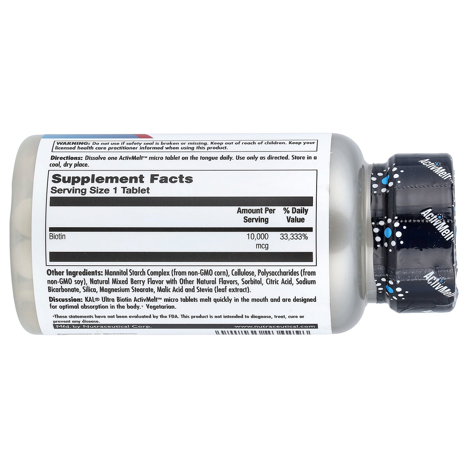 Discussion: KAL® Ultra Biotin ActivMelt™ micro tablets melt quickly in the mouth and are designed for optimal absorption in the body.