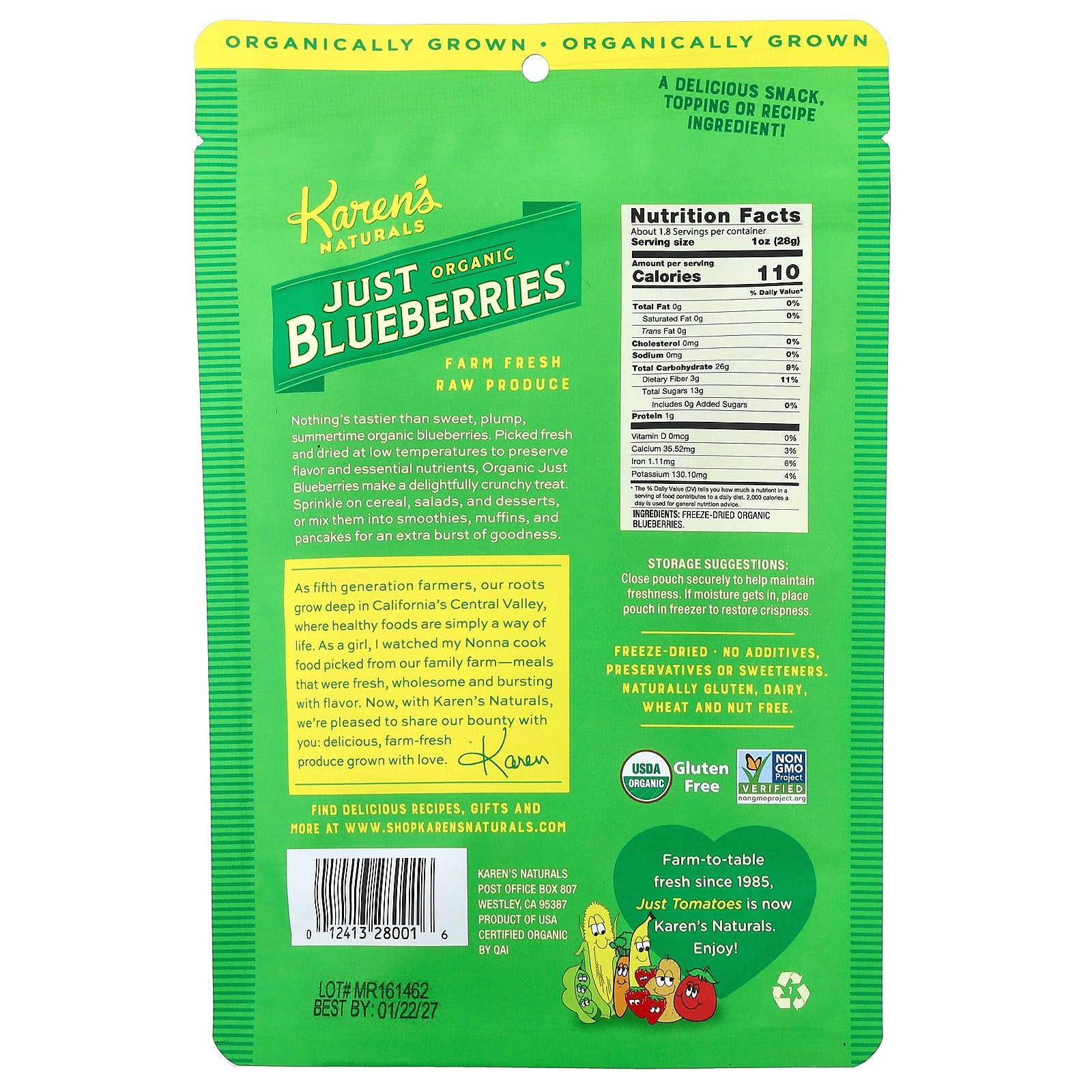 Nothing's tastier than sweet, plump, summertime organic blueberries. Picked fresh and dried at low temperatures to preserve flavor and essential nutrients, Organic Just Blueberries make a delightfully crunchy treat. Sprinkle on cereal, salads, and desserts, or mix them into smoothies, muffins, and pancakes for an extra burst of goodness.