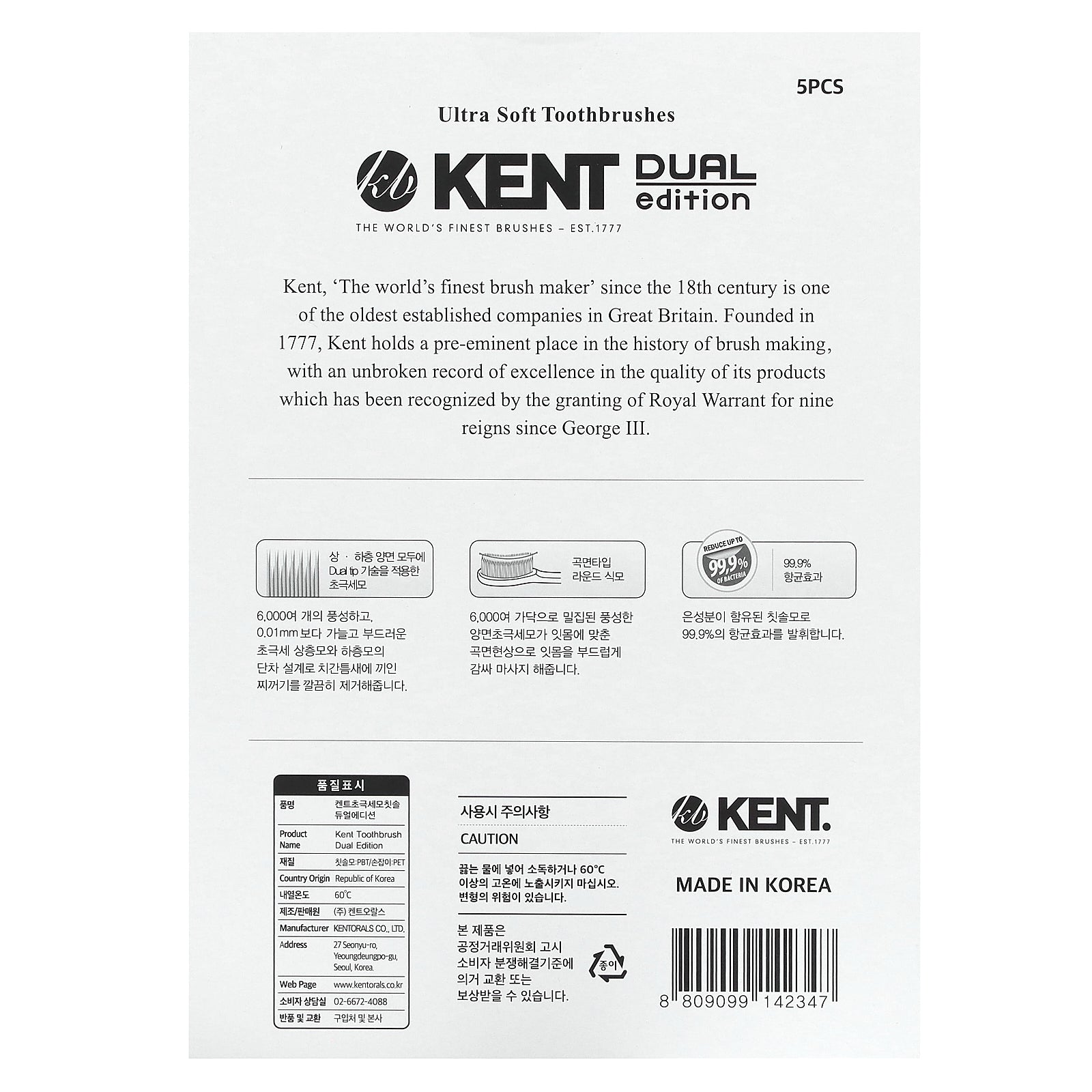 Kent, 'The world's finest brush maker' since the 18th century is one of the oldest established companies in Great Britain. Founded in 1777, Kent holds a pre-eminent place in the history of brush making, with an unbroken record of excellence in the quality of its products which has been recognized by the granting of Royal Warrant for nine reigns since George III.