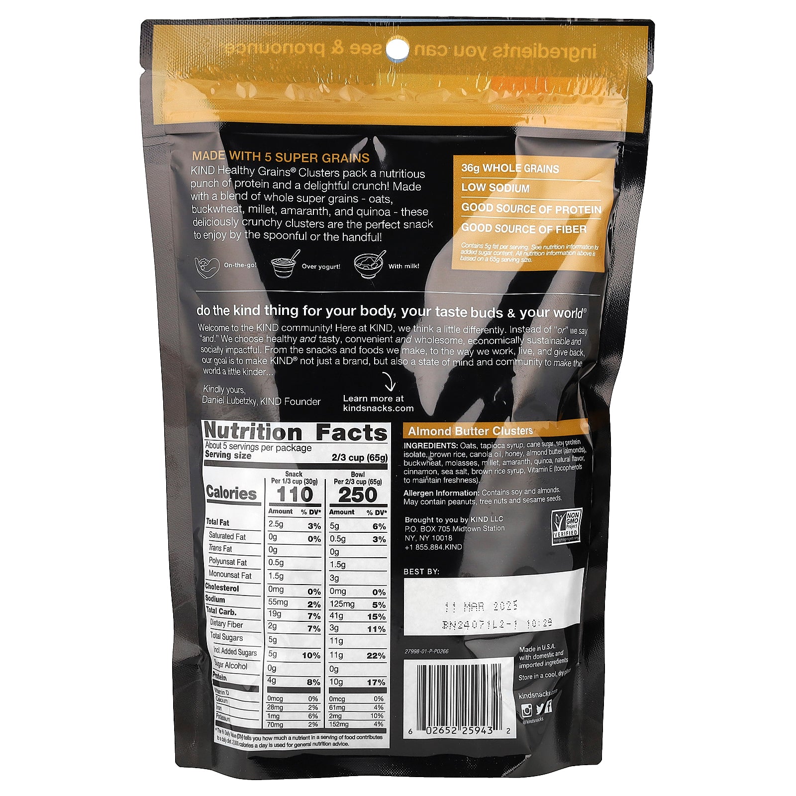 KIND Healthy Grains® Clusters pack a nutritious punch of protein and a delightful crunch! Made with a blend of whole super grains - oats, buckwheat, millet, amaranth, and quinoa - these deliciously crunchy clusters are the perfect snack to enjoy by the spoonful or the handful!