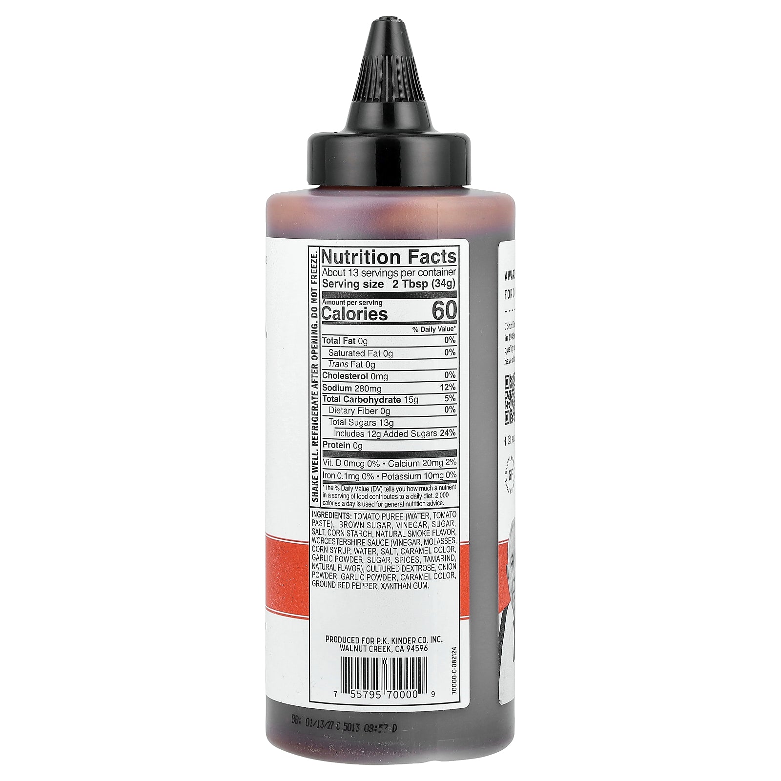 Tomato puree (water, tomato paste), brown sugar, vinegar, sugar, salt, corn starch, natural smoke flavor, worcestershire sauce (vinegar, molasses, corn syrup, water, salt, caramel color, garlic powder, sugar, spices, tamarind, natural flavor), cultured dextrose, onion powder, garlic powder, caramel color, ground red pepper, xanthan gum.