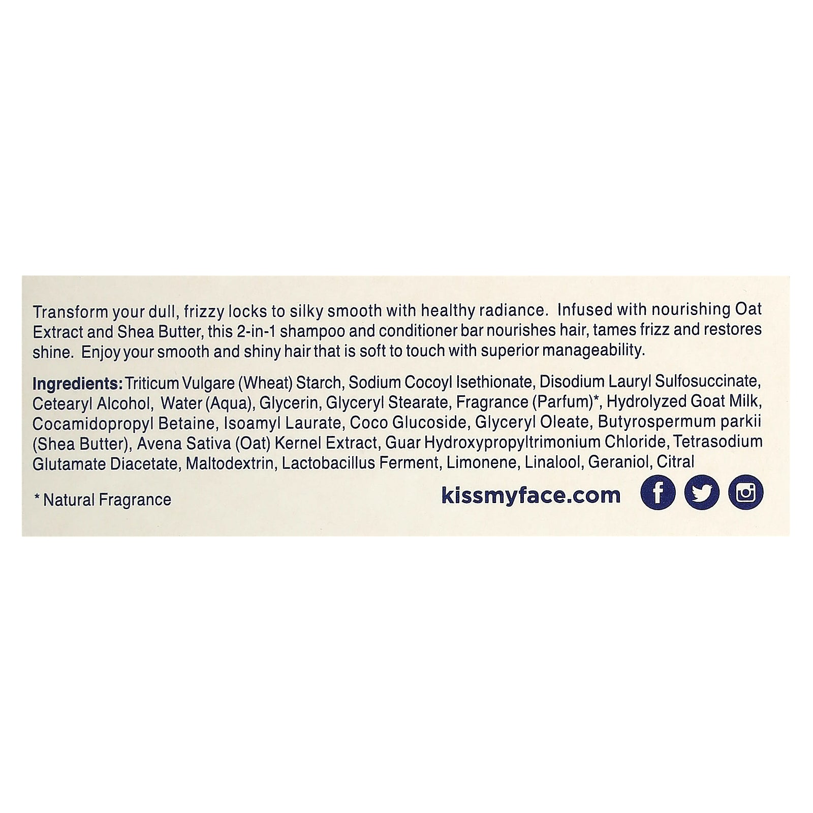 Transform your dull, frizzy locks to silky smooth with healthy radiance. Infused with nourishing Oat Extract and Shea Butter, this 2-in-1 shampoo and conditioner bar nourishes hair, tames frizz and restores shine. Enjoy your smooth and shiny hair that is soft to touch with superior manageability.