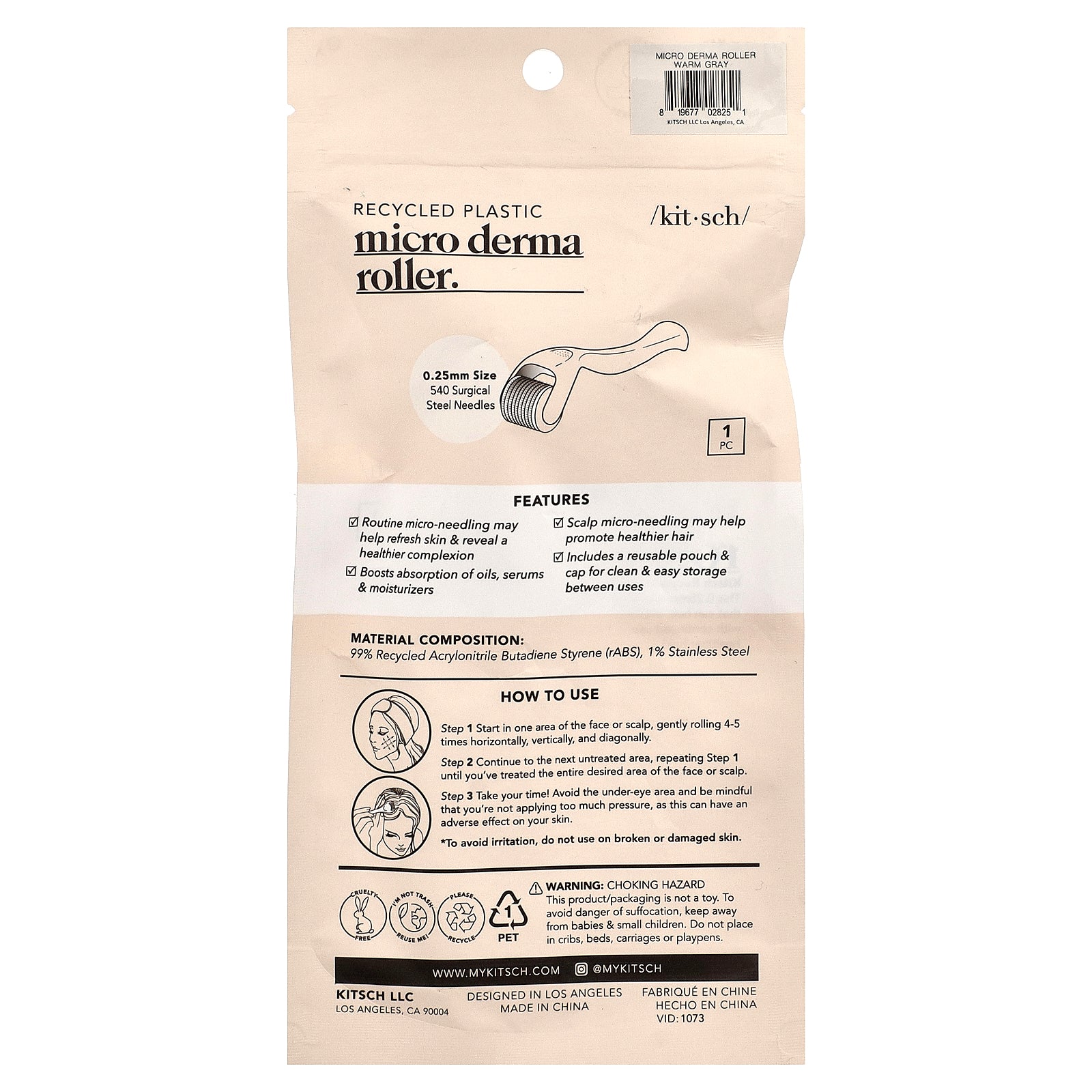 Kitsch Recycled Plastic Micro Derma Roller brings the spa to you! This 0.25mm stainless steel micro-needle tool is your at-home facial that can help improve skin tone and reveal a smoother complexion with continued use. It can also be used on the scalp to promote healthier hair!