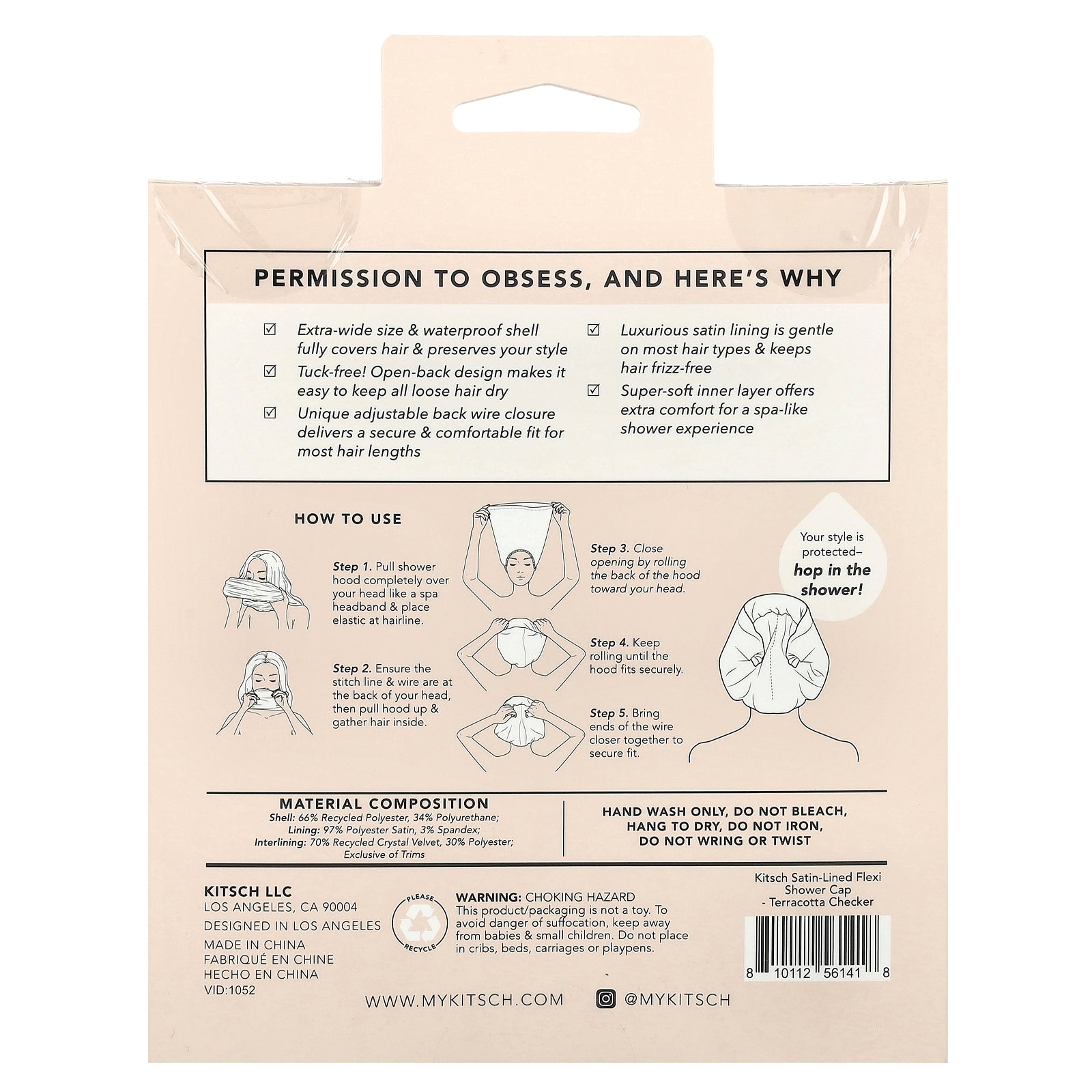 - Tuck-free! Open-back design makes it easy to keep all loose hair dry