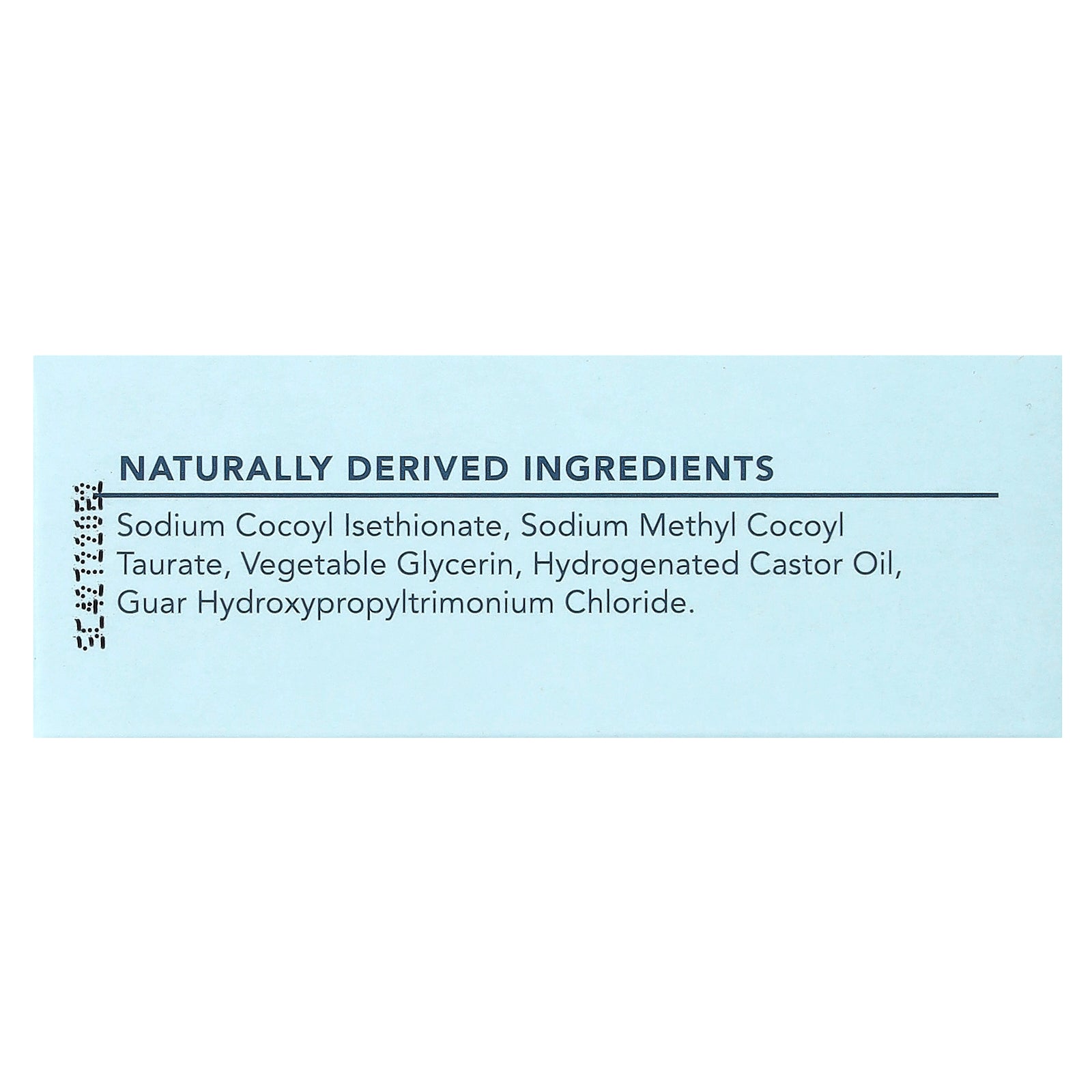 Sodium cocoyl isethionate, sodium methyl cocoyl taurate, vegetable glycerin, hydrogenated castor oil, guar hydroxypropyltrimonium chloride.