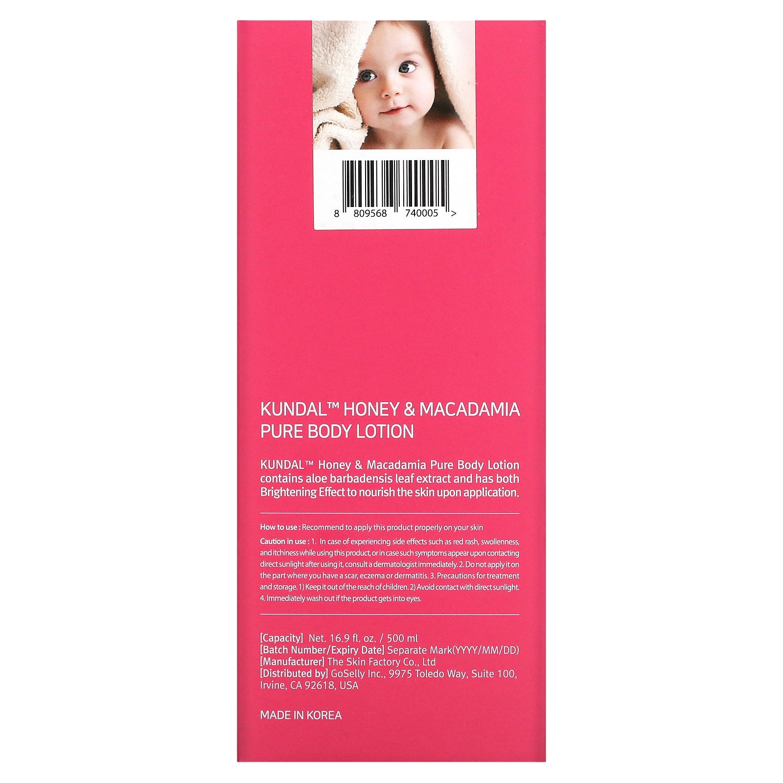 KUNDAL™ Honey & Macadamia Pure Body Lotion contains aloe barbadensis leaf extract and has both Brightening Effect to nourish the skin upon application.