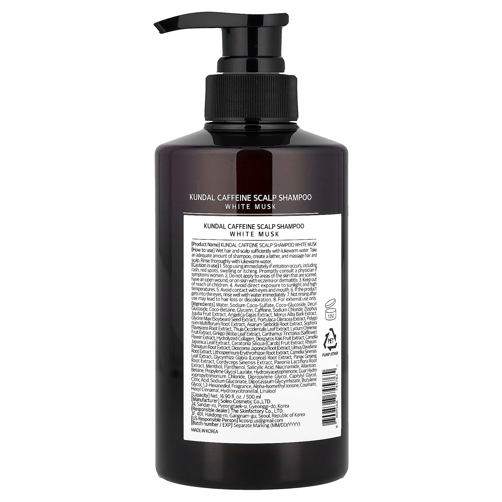 Water, sodium coco-sulfate, coco-glucoside, decyl glucoside, coco-betaine, glycerin, caffeine, sodium chloride, ziziphus jujuba fruit extract, angelica gigas extract, morus alba bark extract, glycine max (soybean) seed extract, portulaca oleracea extract, polygo num multifforum root extract, asarum sieboldii root extract, sophora flavescens root extract, thuja occidentalis leaf extract, lycium chinense fruit extract, ginkgo biloba leaf extract, carthamus tinctorius (safflower) flower extract, hydrolyzed collagen, diospyros kaki fruit extract, camellia japonica leaf extract, ceratonia siliqua (carob) fruit extract, rheum palmatum root extract, dioscorea japonica root extract, ulmus davidiana root extract, lithospermum erythrorhizon root extract, camellia sinensis leaf extract, glycyrhiza glabra (licorice) root extract, panax ginseng root extract, cordyceps sinensis extract, paeonia lactiflora root extract, menthol, panthenol, salicylic acid, niacinamide, allantoin, betaine, propylene glycol laurate, hydroxyacetophenone, guar hydro xypropyltrimonium chloride, dipropylene glycol, caprylyl glycol, citric acid, sodium gluconate, dipotassium glycyrrhizate, butylene glycol, 1,2-hexanediol, fragrance, alpha-isomethyl lonone, coumarin, hexyl cinnamal, hydroxycitronellal, linalool.
