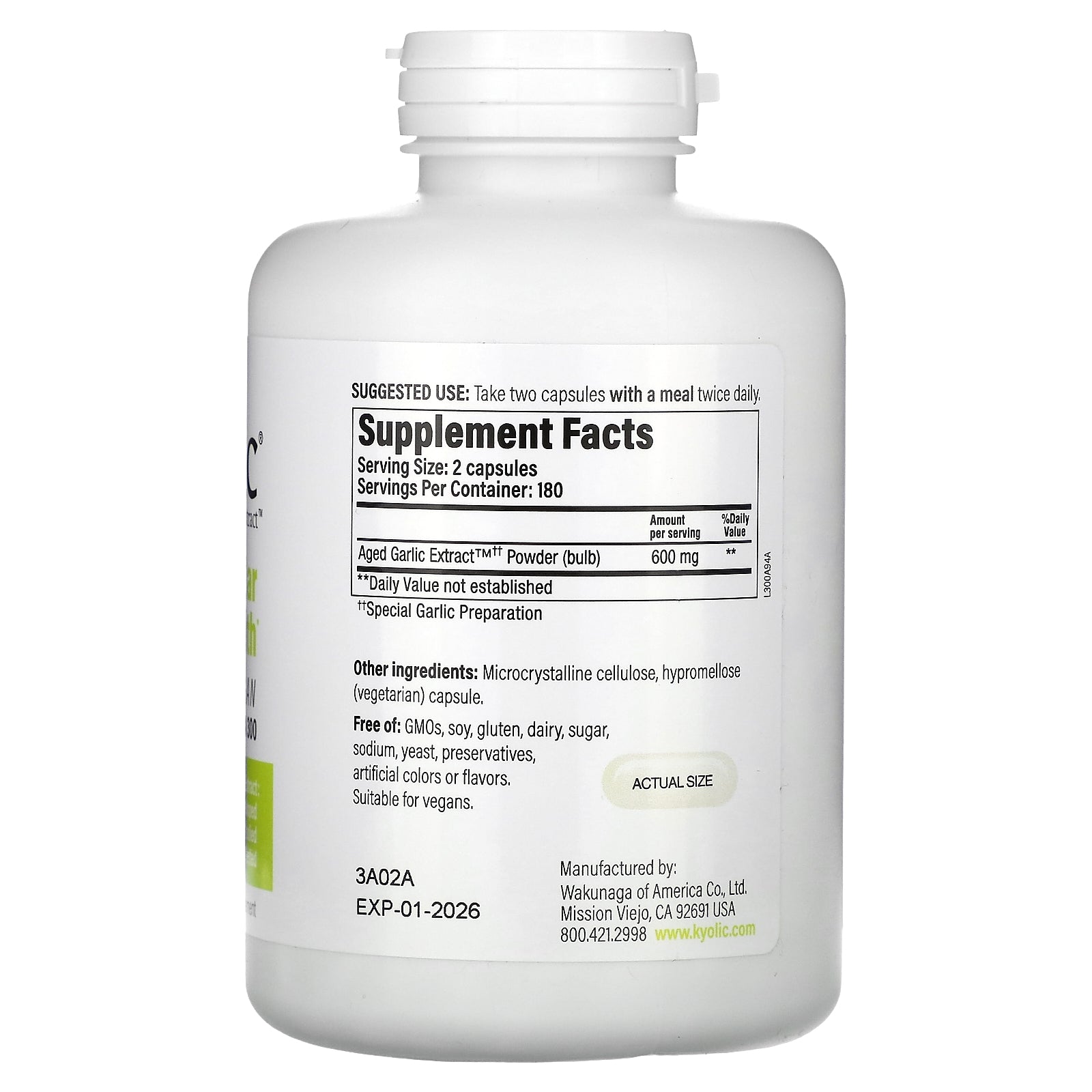Kyolic® Aged Garlic Extract™ (AGE) starts with organically grown garlic. It is then aged using a proprietary process which removes odor-causing compounds attributed to raw garlic and increases the bioavailable beneficial compounds.