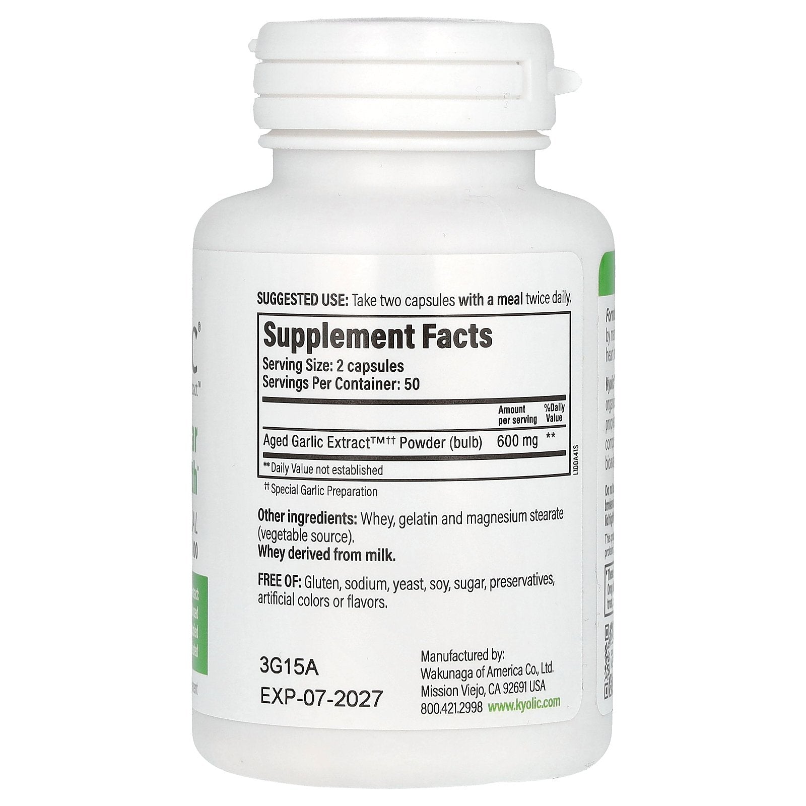 Kyolic® Aged Garlic Extract™ (AGE) starts with organically grown garlic. It is then aged using a proprietary process which removes odor-causing compounds attributed to raw garlic and increases the bioavailable beneficial compounds.