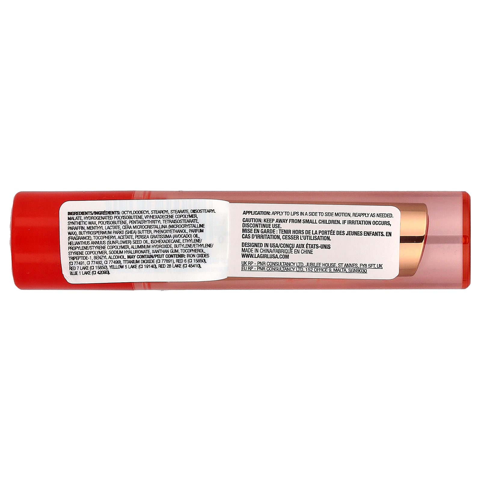 Octyldodecyl stearoyl stearate, desostearyl malate, hydrogenated polyisobutene, vp/hexadecene copolymer, synthetic wax, polyisobutene, pentaerythrityl tetraisostearate, paraffin, menthyl lactate, cera microcristallina (microcrystalline wax), butyrospermum parkii (shea) butter, phenoxyethanol, parfum (fragrance), tocopheryl acetate, persea gratissima (avocado) oil, helianthus annuus (sunflower) seed oil, isohexadecane, ethylene/ propylene/styrene copolymer, aluminum hydroxide, butylene/ethylene/ styrene copolymer, sodium hyaluronate, xanthan gum, tocopherol, tripeptide-1, benzyl alcohol may contain/peut contenir: iron oxides (ci 77491, ci 77492, ci 77499), titanium dioxide (ci 77891), red 6 (ci 15850), red 7 lake (ci 15850), yellow 5 lake (ci 19140), red 28 lake (ci 45410). blue 1 lake (ci42090).