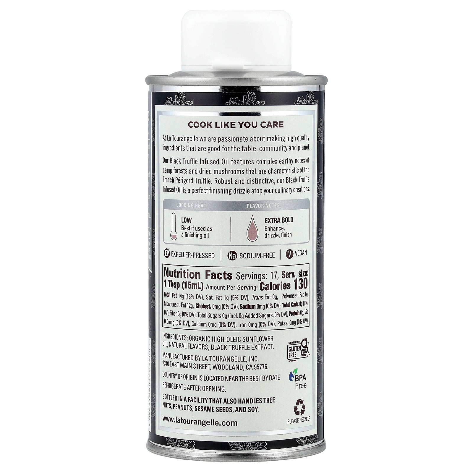 Organic high-oleic sunflower oil, natural flavors, black truffle extract.