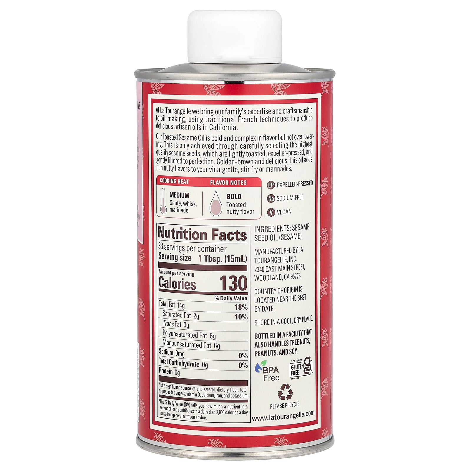 Our Toasted Sesame Oil is bold and complex in flavor but not overpowering. This is only achieved through carefully selecting the highest quality sesame seeds, which are lightly toasted, expeller-pressed, and gently filtered to perfection. Golden-brown and delicious, this oil adds rich nutty flavors to your vinaigrette, stir fry or marinades.