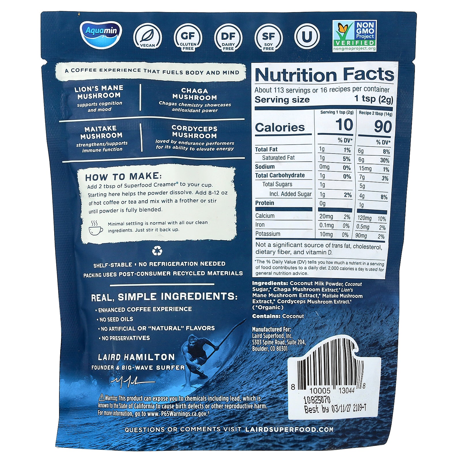 Coconut milk powder, coconut sugar ,* chaga mushroom extract,* lion's mane mushroom extract ,* maitake mushroom extract ,* cordyceps mushroom extract.*