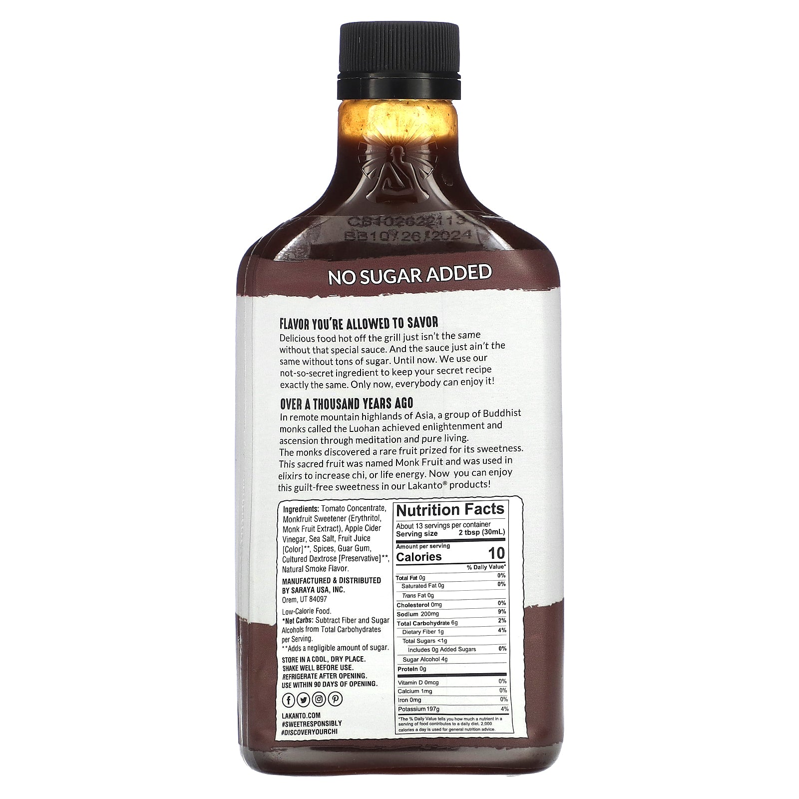 Tomato concentrate, monkfruit sweetener (erythritol, monk fruit extract), apple cider vinegar, sea salt, fruit juice [color]**, spices, guar gum, cultured dextrose [preservative]**, natural smoke flavor.