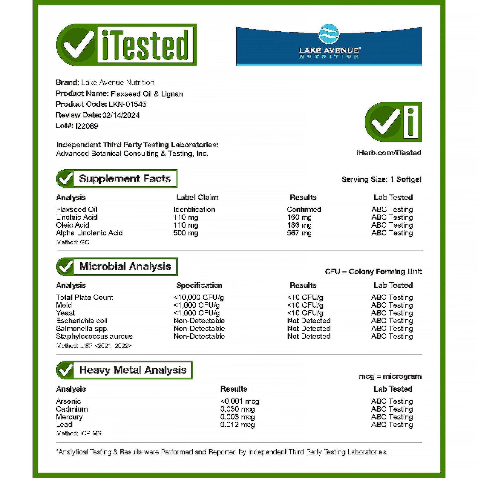 - Lake Avenue Nutrition Cold Pressed Flaxseed Oil and Lignans