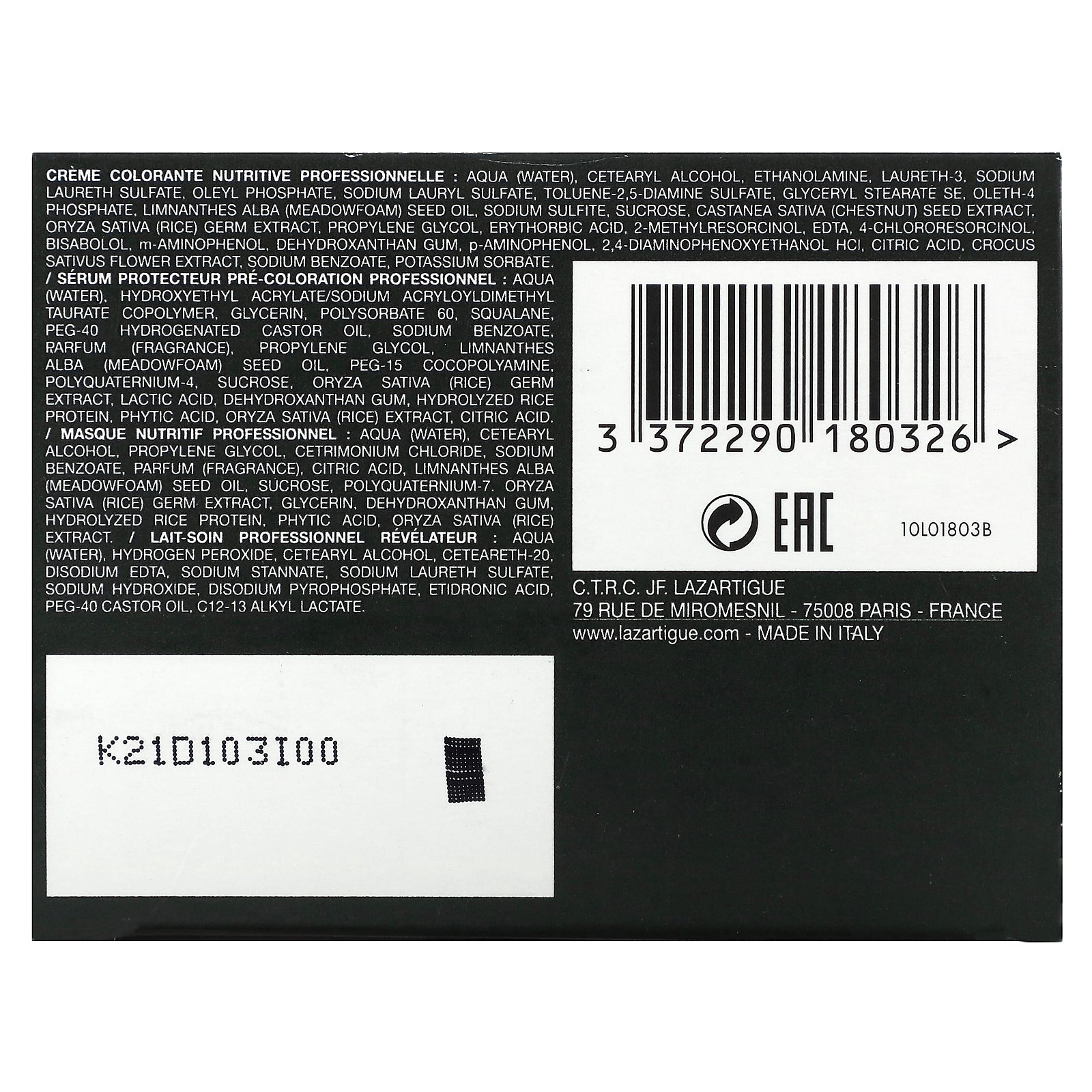 Expert in salon haircolor since 1976, Lazartigue has created La Couleur Absolue. Developed with colorists, this ammonia-free permanent hair dye with botanical extracts is concentrated with professional pigments to give an absolute expression of color and shine. Enriched with rice milk and meadowfoam seed oil, its formula is combined with an exclusive** pre-colour serum and a mask for protected and intensely nourished hair fibers before, during and after coloring.