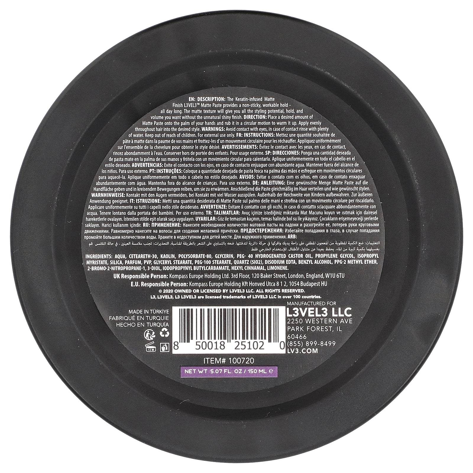 The Keratin-infused Matte Finish L3VEL3™ Matte Paste provides a non-sticky, workable hold - all day long. The matte texture will give you all the styling potential, hold, and volume you want without the unnatural shiny finish.