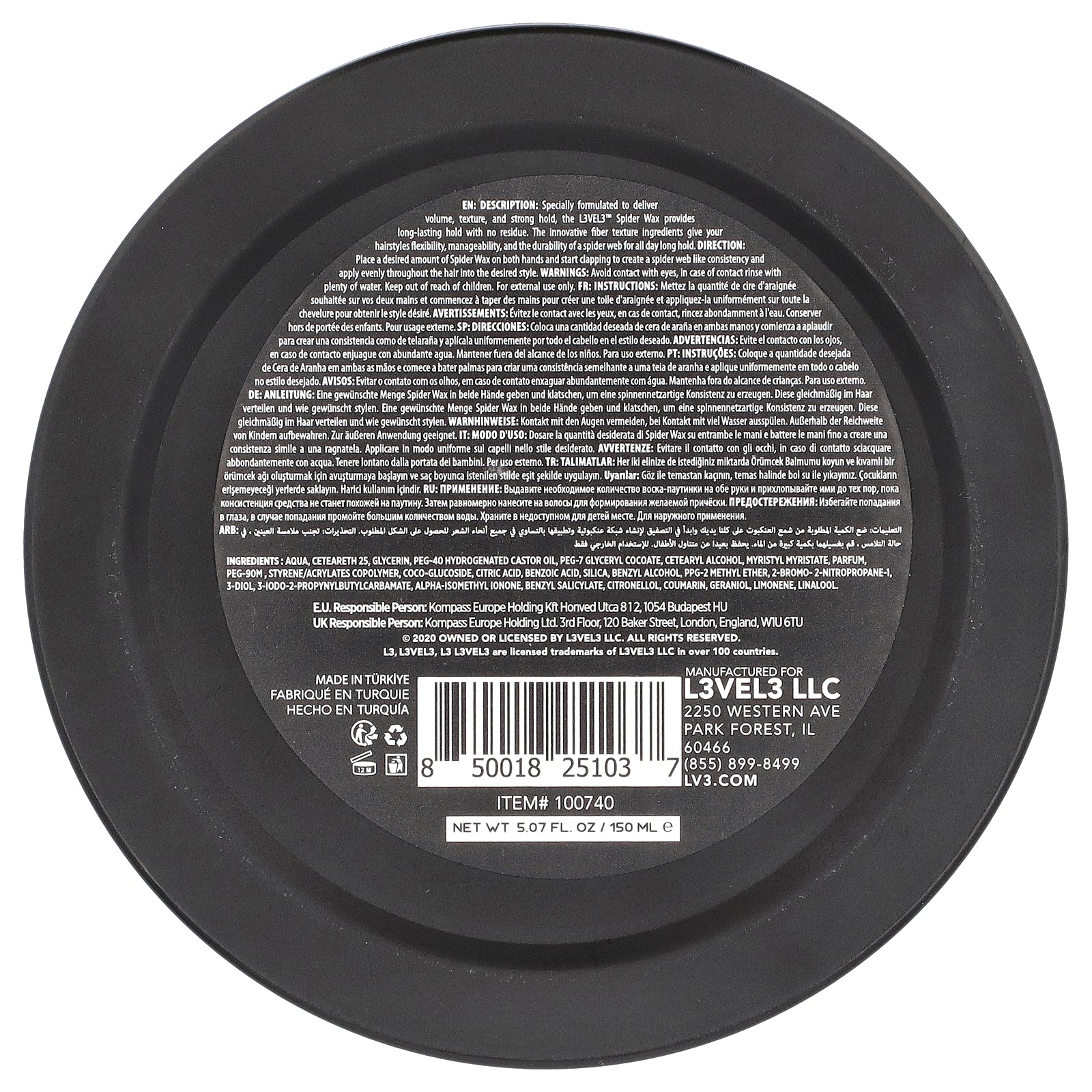 Specially formulated to deliver volume, texture, and strong hold, the L3VEL3™ Spider Wax provides long-lasting hold with no residue. The innovative fiber texture ingredients give your hairstyles flexibility, manageability, and the durability of a spider web for all day long hold.
