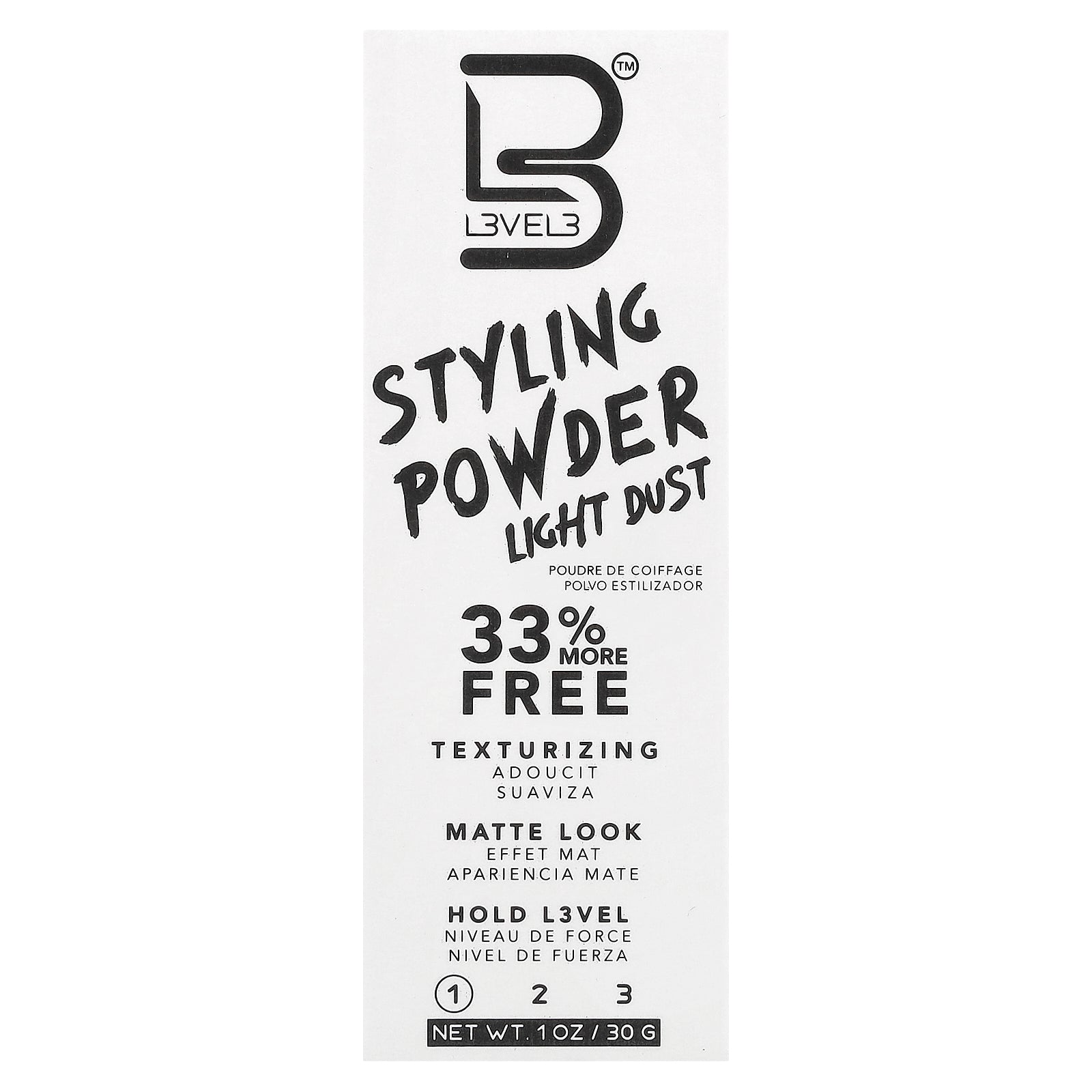 L3VEL3™ Hair Styling Powder is a reworkable volumizing powder which gives a Matte Finish with lightweight texture and separation. It can be applied direct to hair or rubbed through with your hands. Suitable for all hair types.