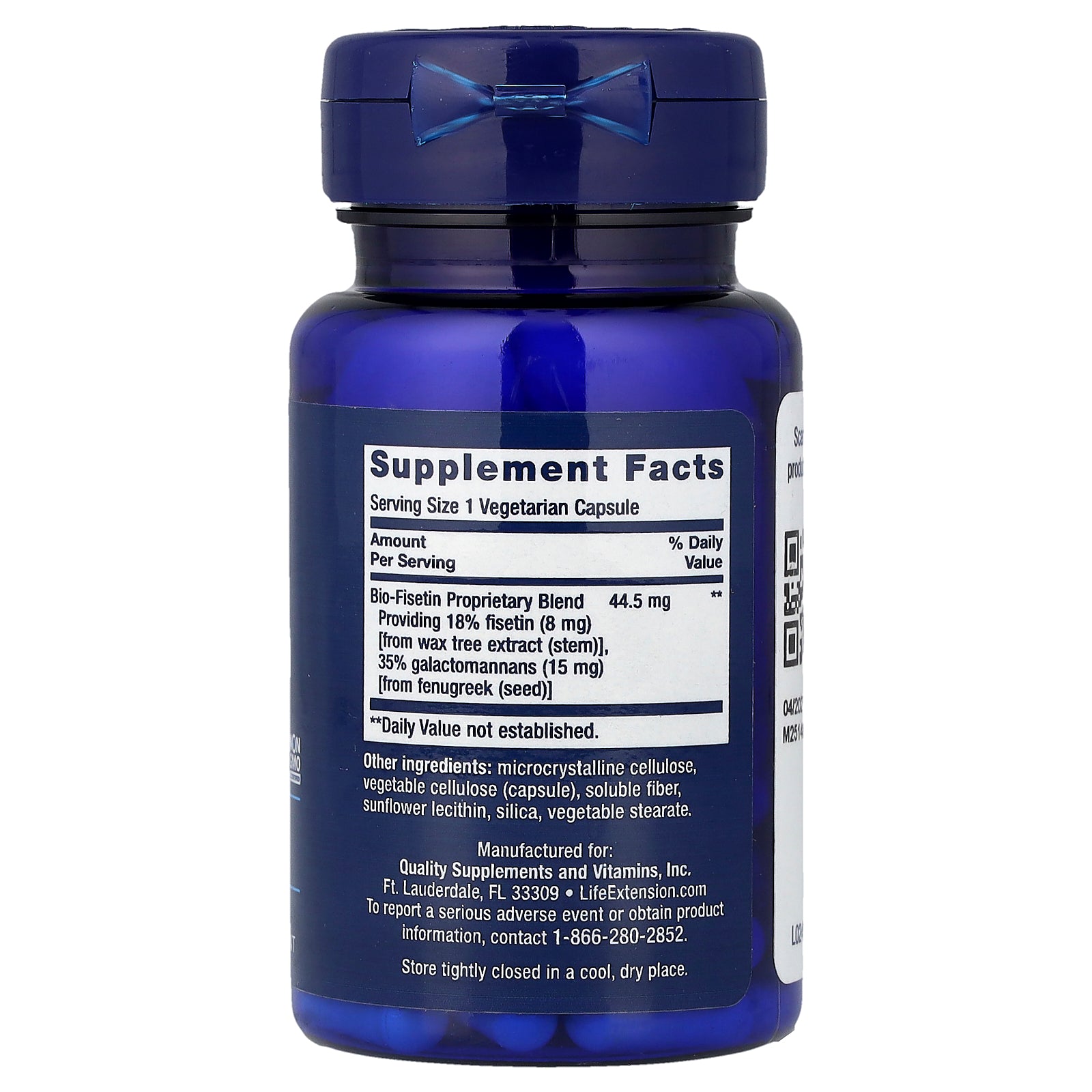 | Bio-Fisetin Proprietary Blend Providing 18% fisetin (8 mg) [from wax tree extract (stem)], 35% galactomannans (15 mg) [from fenugreek (seed)] |
