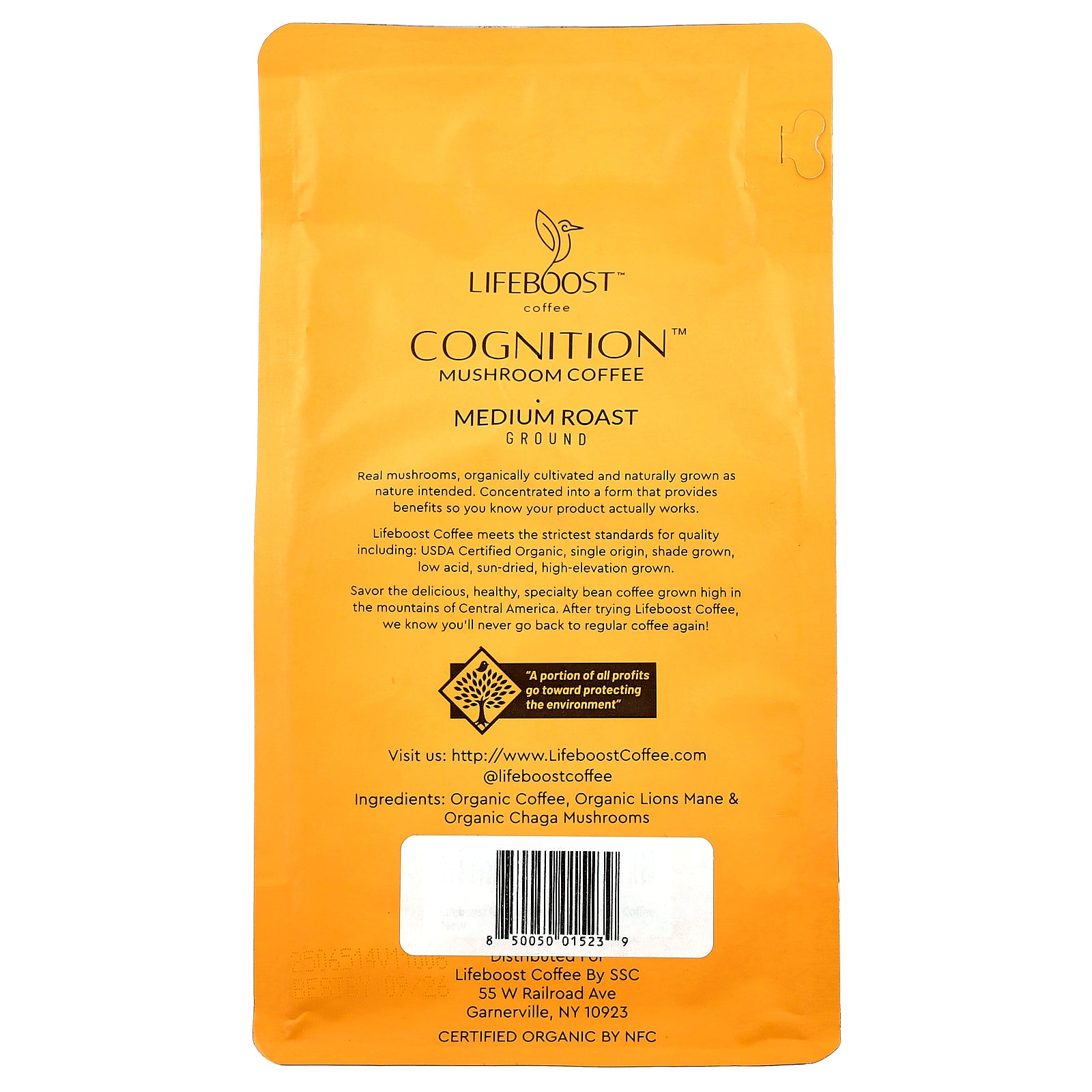 Organic coffee, organic lions mane & organic chaga mushrooms.