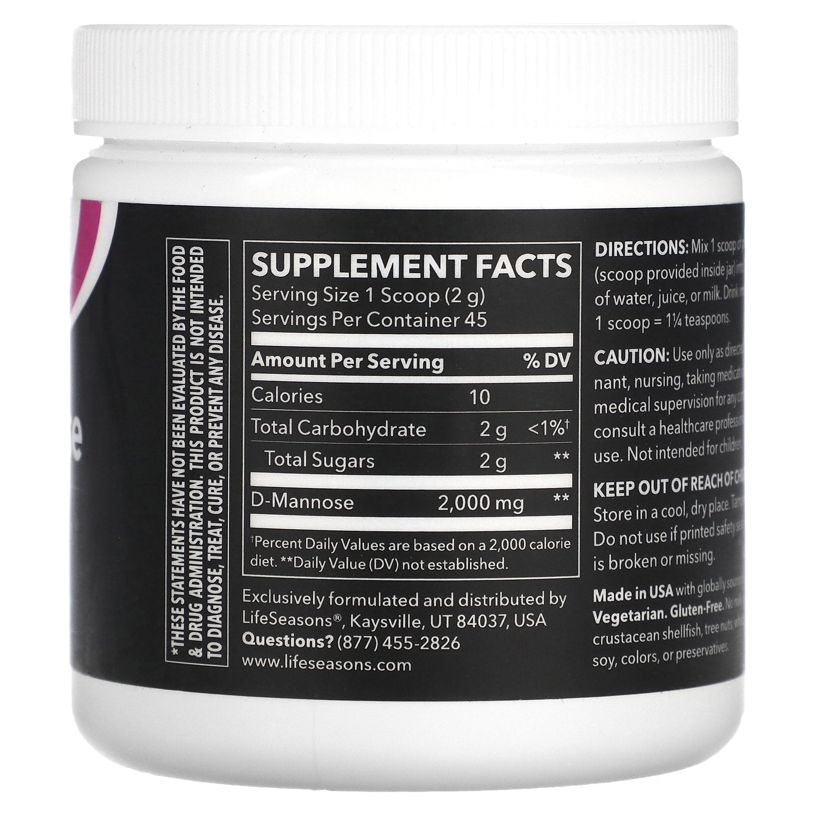 D-Mannose is a simple sugar not metabolized by the body, and excreted in in the urine. It may help support urinary health by inhibiting microbes from adhering to the bladder wall. 2,000 mg is a clinical dose.