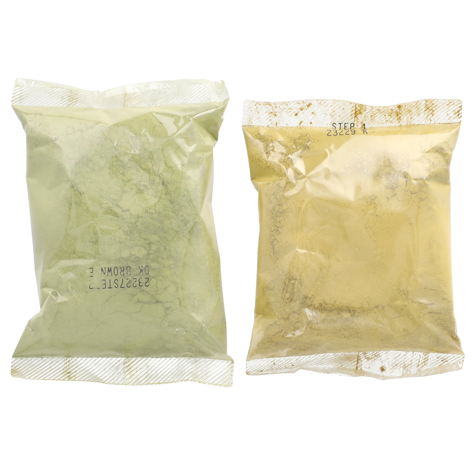 Lawsonia inermis (henna) leaf powder*, indigofera tinctoria (indigo) leaf powder*, cassia auriculata (senna) leaf powder*.