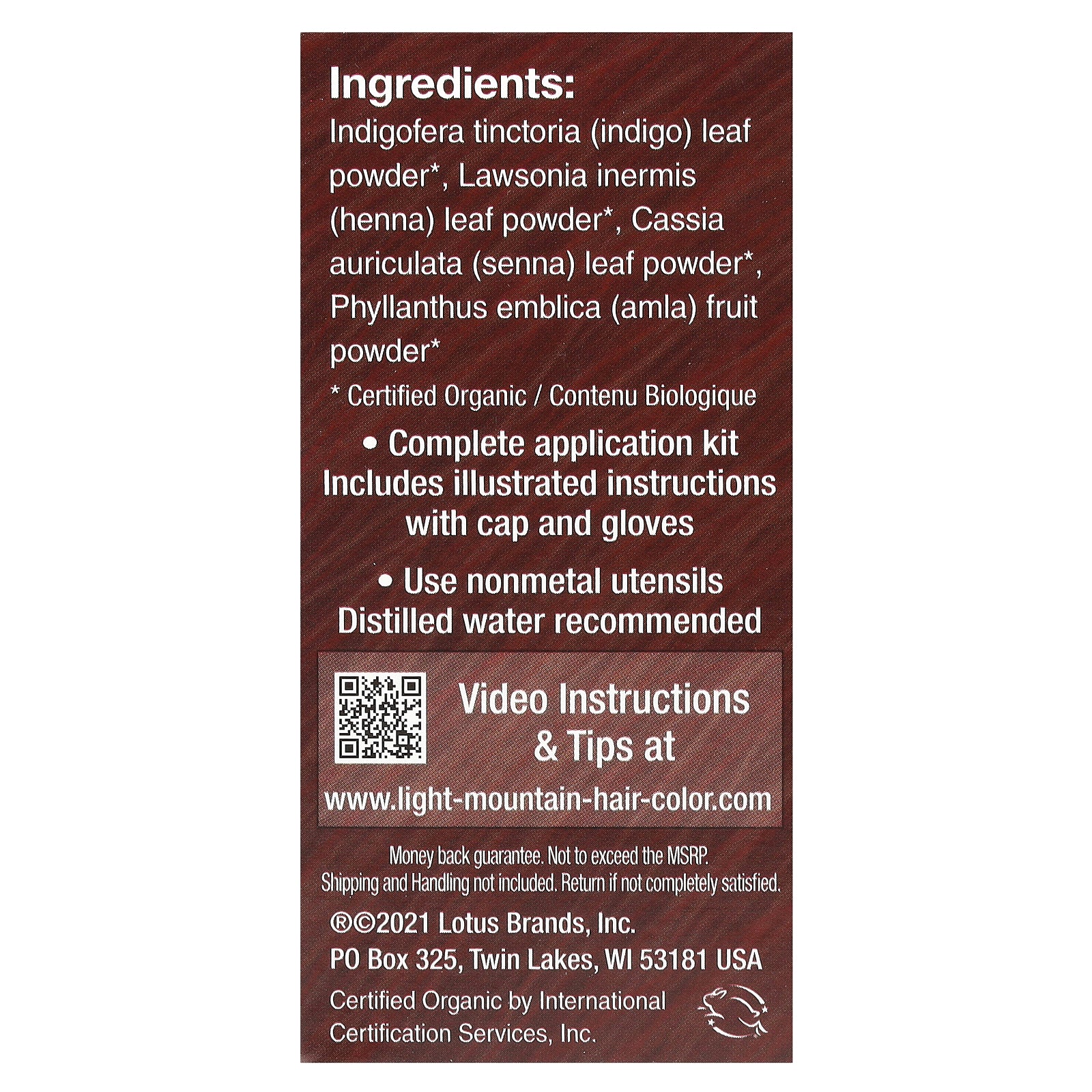 Light Mountain® Natural works with your current hair color by coating each strand with a luminous layer of color. The natural botanicals protect and nourish hair, and help restore body and shine while gently depositing color. Our formulas use a finer mesh powder. The prepared hair color will have a creamier consistency allowing for smoother application, easier rinsing, and better color release.