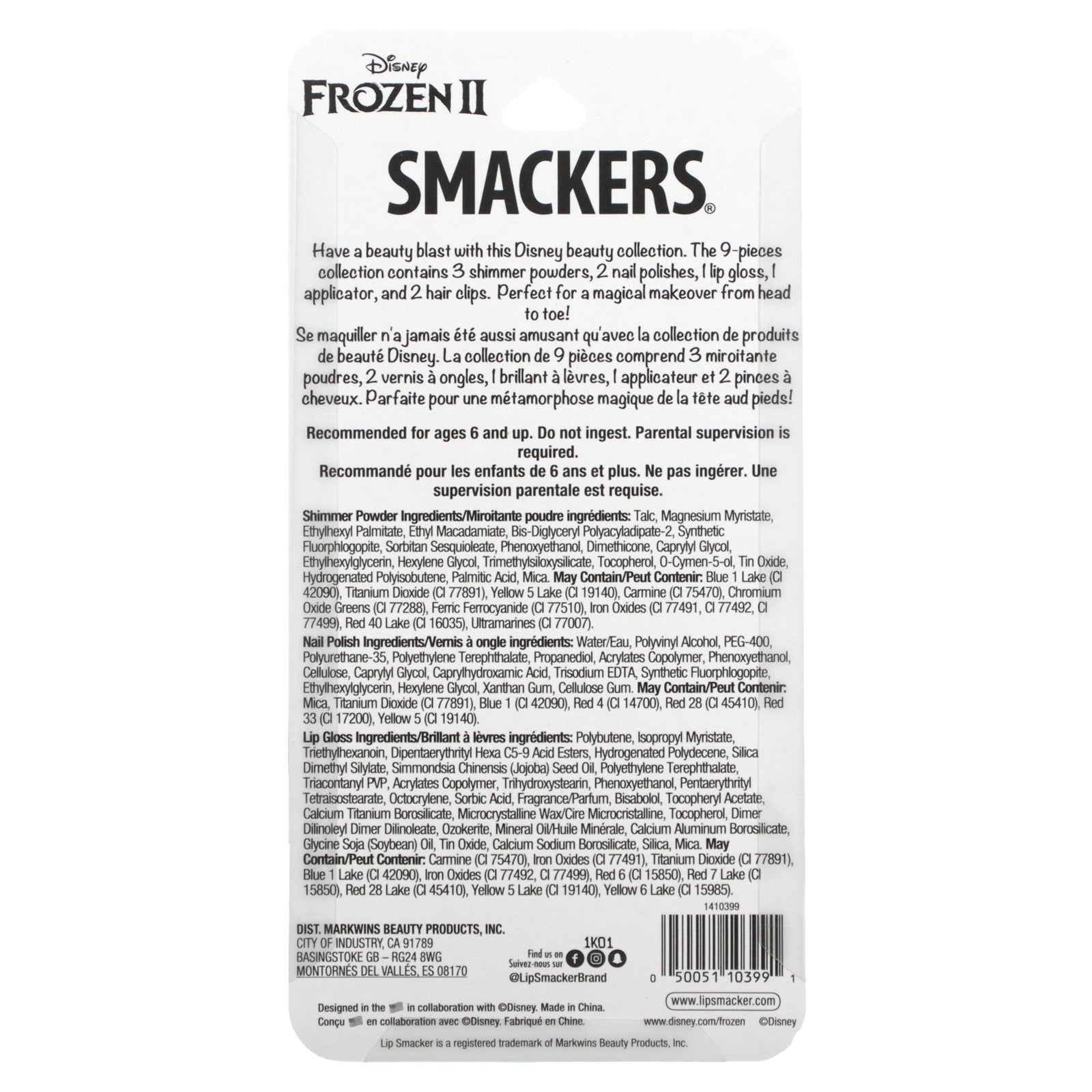 Have a beauty blast with this Disney beauty collection. The 9-pieces collection contains 3 shimmer powders, 2 nail polishes, 1 lip gloss, 1 applicator, and 2 hair clips. Perfect for a magical makeover from head to toe!
