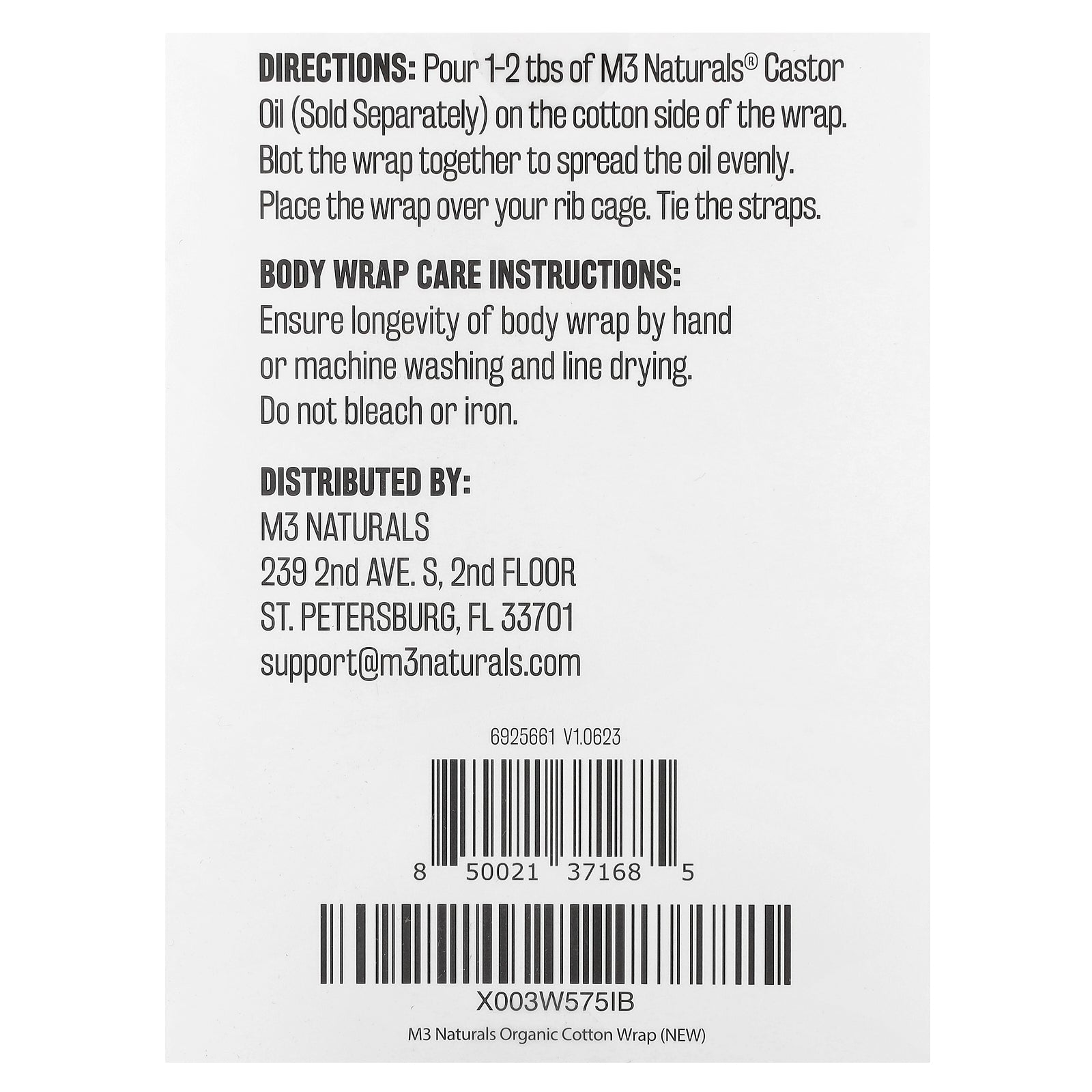 Pour 1-2 tbs of M3 Castor Oil (Sold Separately) on the cotton side of the wrap. Blot the wrap together to spread the oil evenly. Place the wrap over your rib cage. Tie the straps.