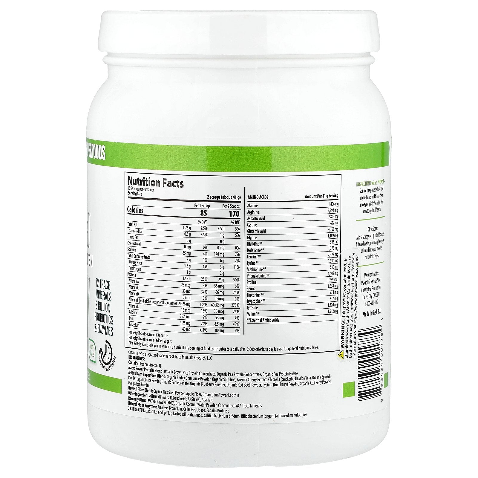 Macro power protein blend: organic brown rice protein concentrate, organic pea protein concentrate, organic pea protein isolate.