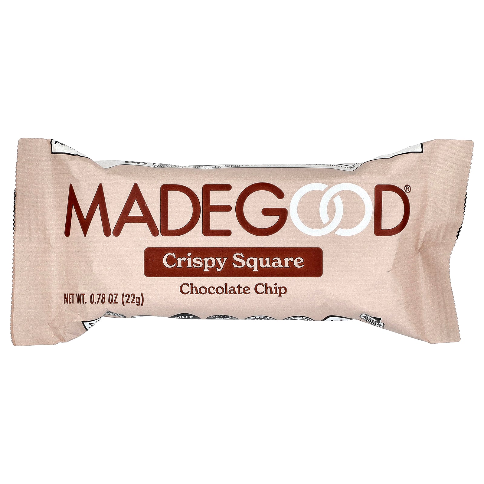 Deliciously crispy and chewy topped with melt-in -your-mouth chocolate chips, MadeGood® vegan Chocolate Chip Crispy Squares have a classic marshmallow- like texture made for everyone to enjoy.