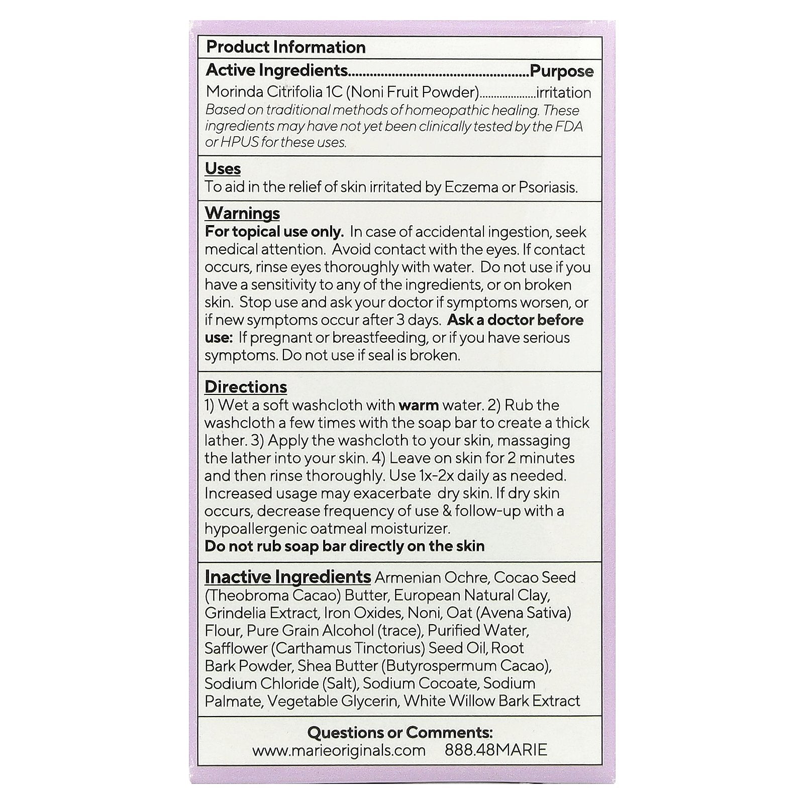 Uses: To aid in the relief of skin irritated by Eczema or Psoriasis.