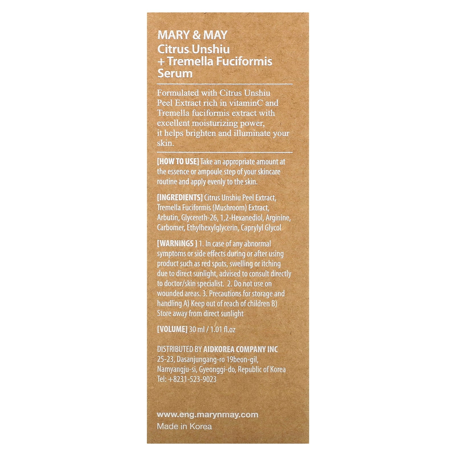 - Citrus Unshiu Peel Extract 83.5%, Tremella Fuciformis 9.7%