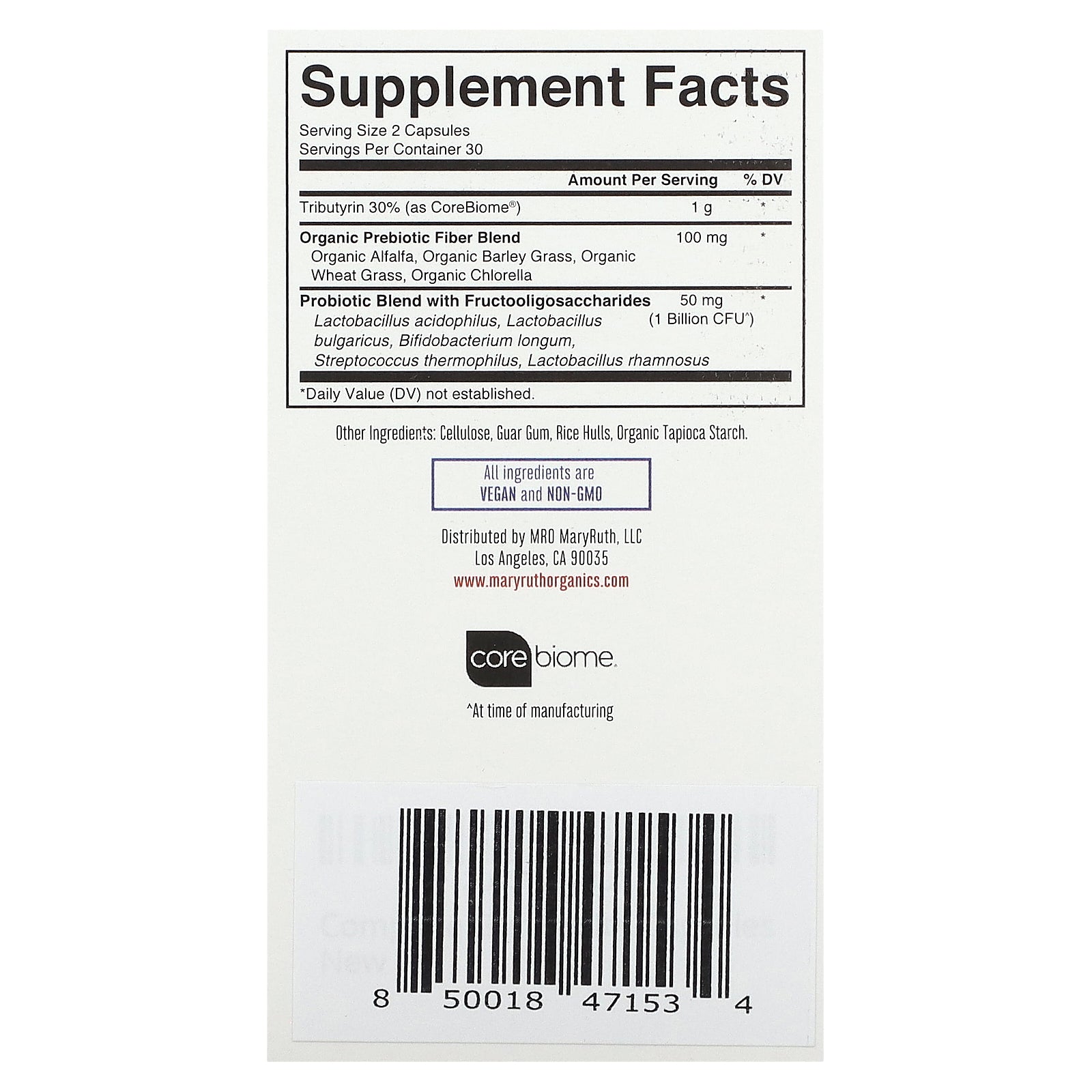 Probiotics are friendly bacteria that support gut health by suppressing bad bacteria, while aiding in digestion. Prebiotics fibers nourish and encourage the activities of those beneficial bacteria, allowing them to thrive. Postbiotics, here as Butyrate, are short-chain fatty acids which are important in maintaining the integrity of the gut's lining.
