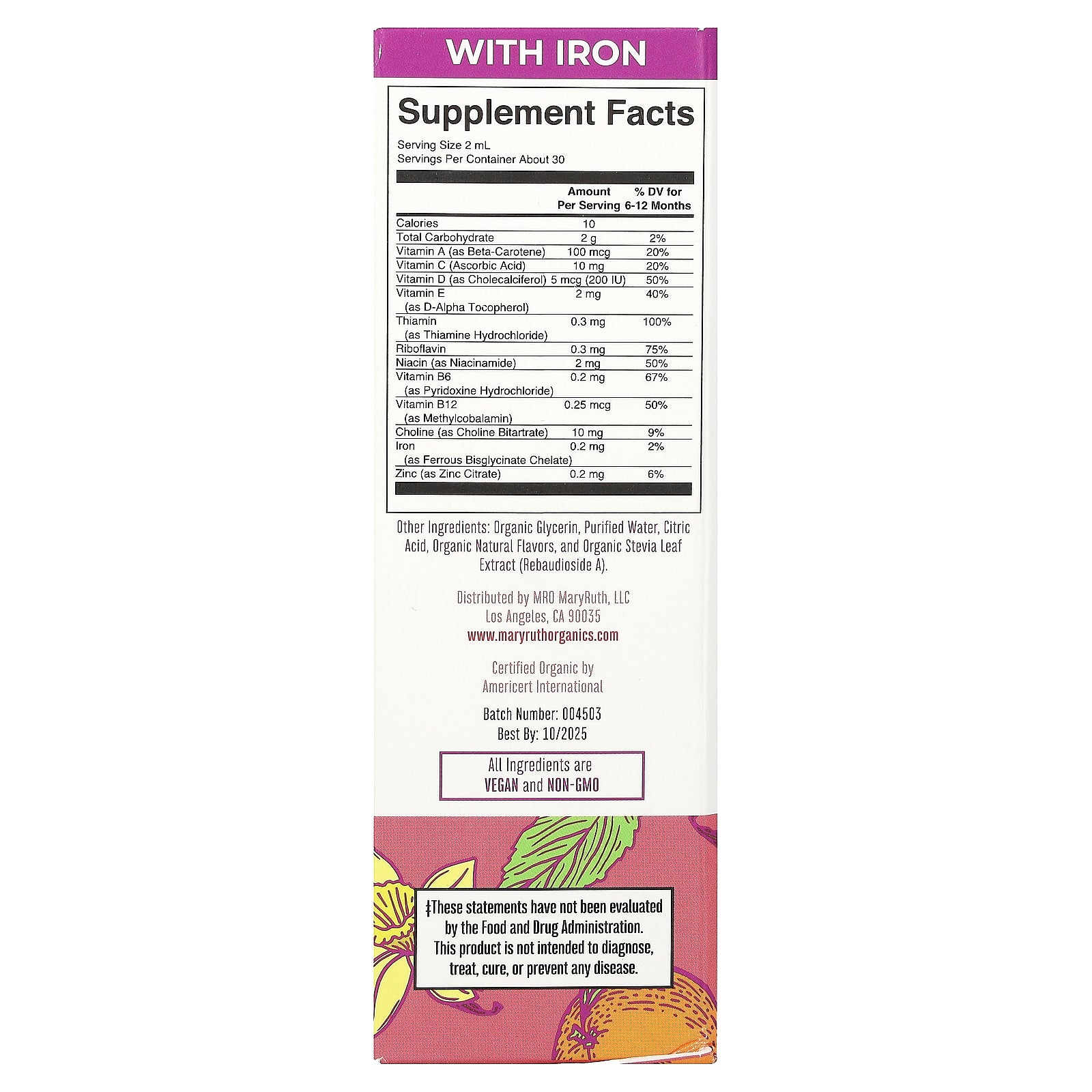 Shake gently before use. Ages 6-12 months, take up to 2 mL daily or as recommended by a physician or healthcare professional. Please avoid direct dropper contact to the skin or mouth in order to prevent product contamination and damage to the dropper. Do not exceed the recommended dose.
