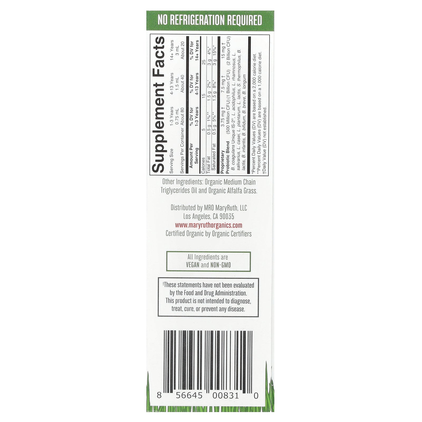 Organic medium chain triglycerides oil and organic alfalfa grass.