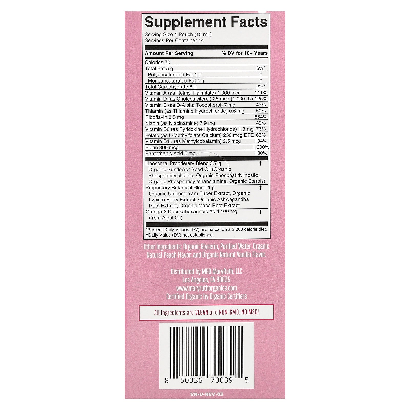 | Liposomal Proprietary Blend Organic Sunflower Seed Oil (Organic Phosphatidylcholine, Organic Phosphatidylinositol, Organic Phosphatidylethanolamine, Organic Sterols) |